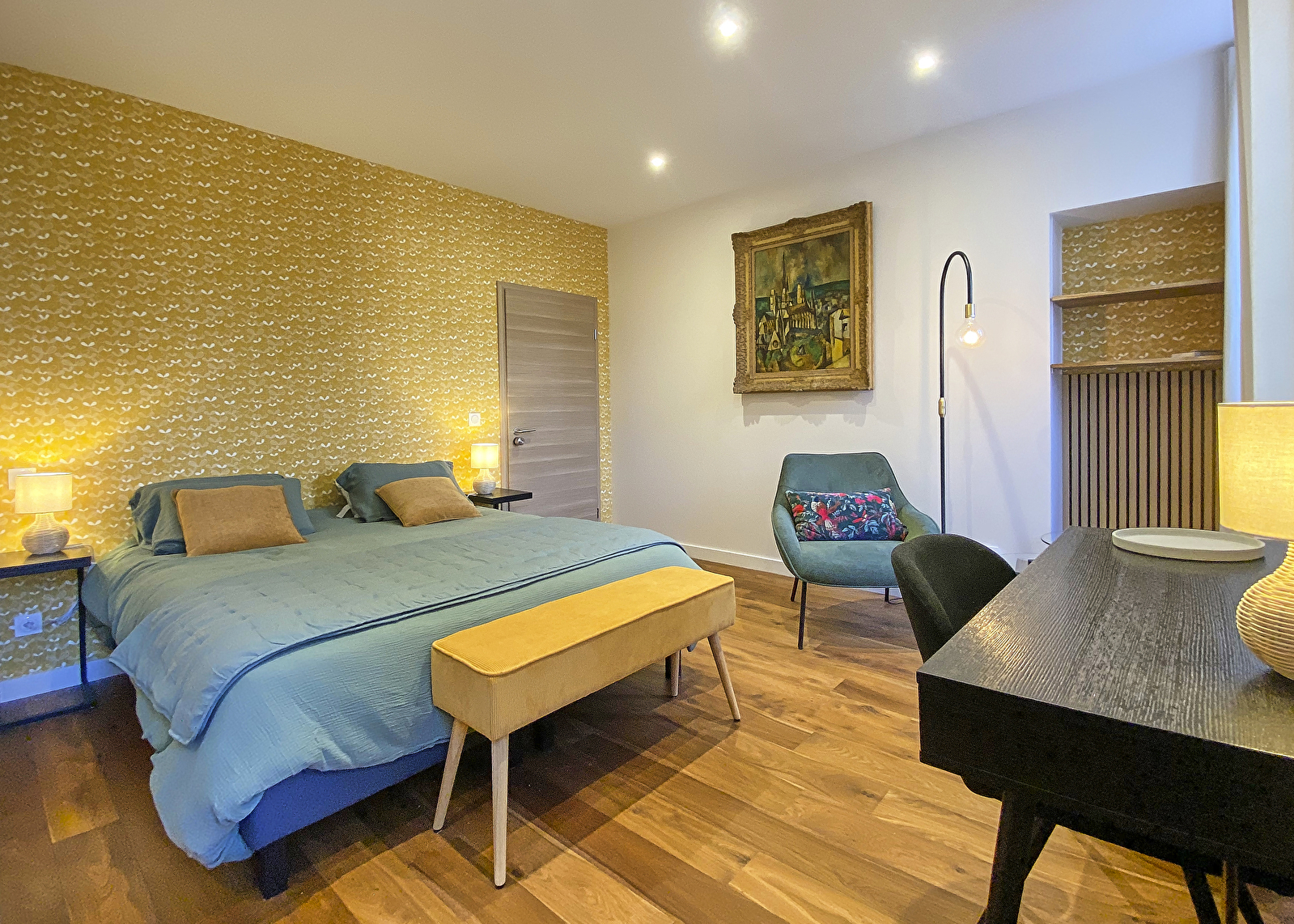 Une chambre avec un grand lit de 160 cm (Epeda), idéal pour un couple,