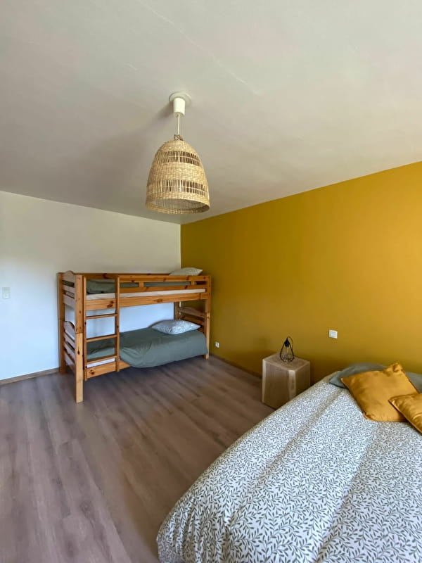 - Une chambre avec vue panoramique : 1 lit 140, 1 lit superposé pour enfants et 1 armoire.