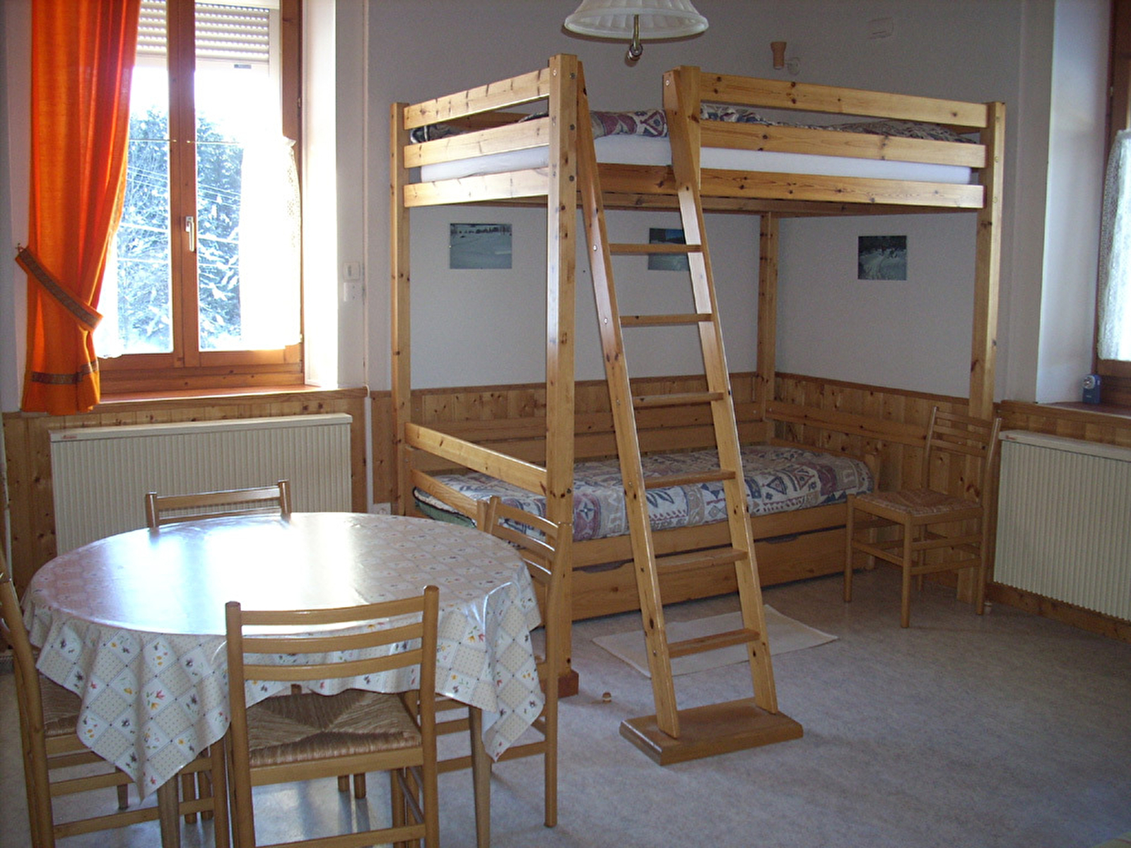 Dans la pièce de vie, vous disposerez d'un canapé convertible et de lits superposés.