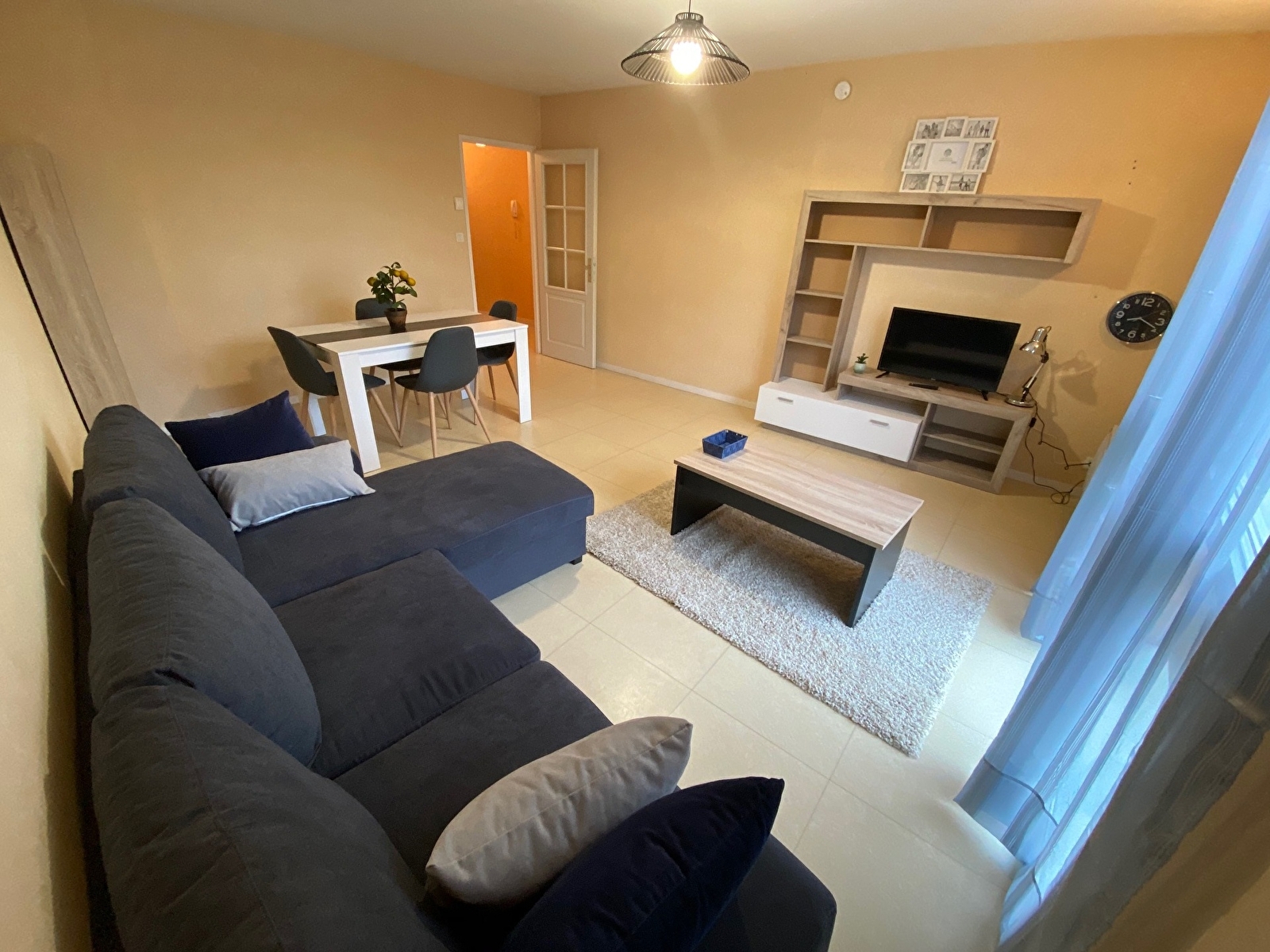 Il se compose : une chambre, une pièce à vivre pouvant se transformer en une deuxième chambre, une cuisine équipée, un toilette indépendant et une salle de bain. (avec machine à laver).