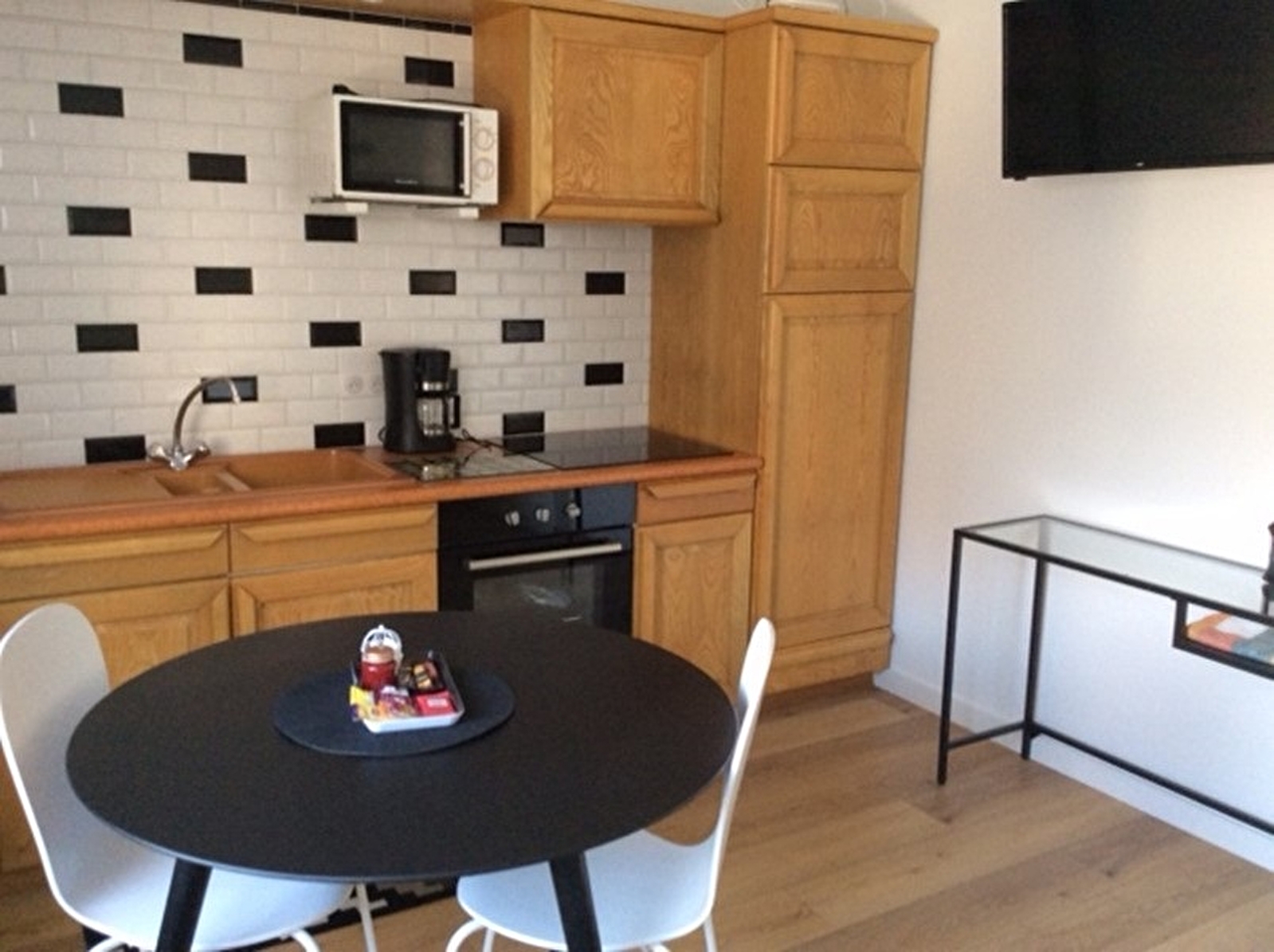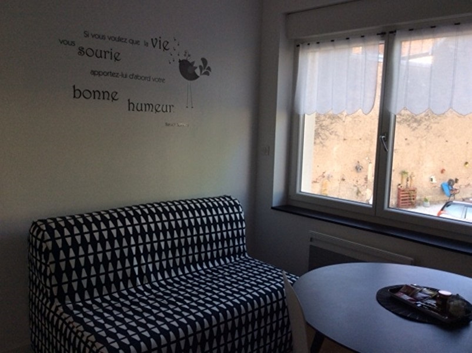 F1 tout confort 1er étage avec balcon : l'ALOUETTE *** chambre lit en 140, pièce à vivre avec cuisine équipée, télévision, wifi, salle de bain et WC séparé.
