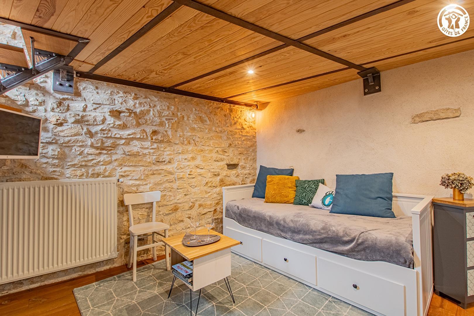 Passionnés de nature & d'environnement, Fabienne & Cyril vous accueillent au sein d'un charmant authentique corps de ferme traditionnel de caractère du XVIIIe - chargé d'histoire & restauré avec soins - niché au calme sur une propriété naturelle de 12 ha entretenue selon les principes écologiques de la "permaculture" & du respect de la biodiversité. Quiétude absolue à deux pas des vignobles, au creux d'un vaste bucolique plateau de champs & prairies boisées (avec les vaches charolaises comme voisines), à l'orée d'une grande forêt domaniale, en pleine douce campagne tournugeoise vallonnée (protégée en Zone Natura 2000 & ZNIEFF pour ses richesses faunistiques & floristiques). Cadre paysagé enchanteur & apaisant (possibilité d'observer la faune sauvage), littéral havre de paix & repos et "petit coin de paradis vert" blotti à deux pas du bourg typique de Chapaize (dotée de 2 églises romanes du XIe classées, dont une des plus anciennes "tour-lanterne" de Bourgogne & du site ultra réputé de Lancharre). Gîte de très bon confort Atypique "mini loft" au beau volume "cathédrale". Chaleureux cachet campagnard aux accents contemporains, sublimé par une sculpturale mezzanine en métal, les poutres et l'imposant mur en pierres d'origine. Beaucoup charme. Ambiance cosy. Agréable intimiste "jardin déporté" paré d'un salon de jardin ombragé sous les arbres & d'une magnifique vue dégagée sur la campagne alentour.