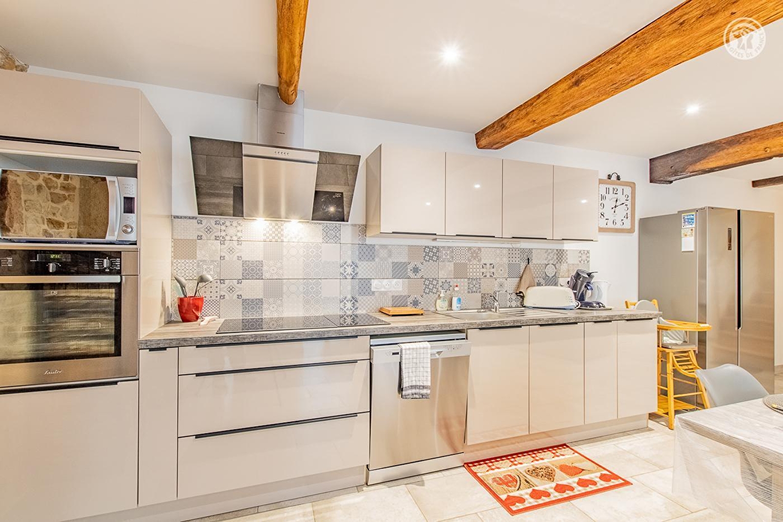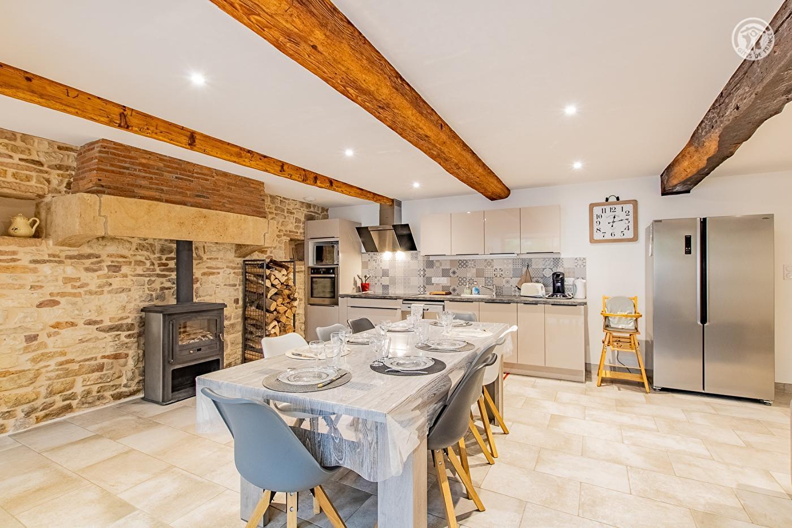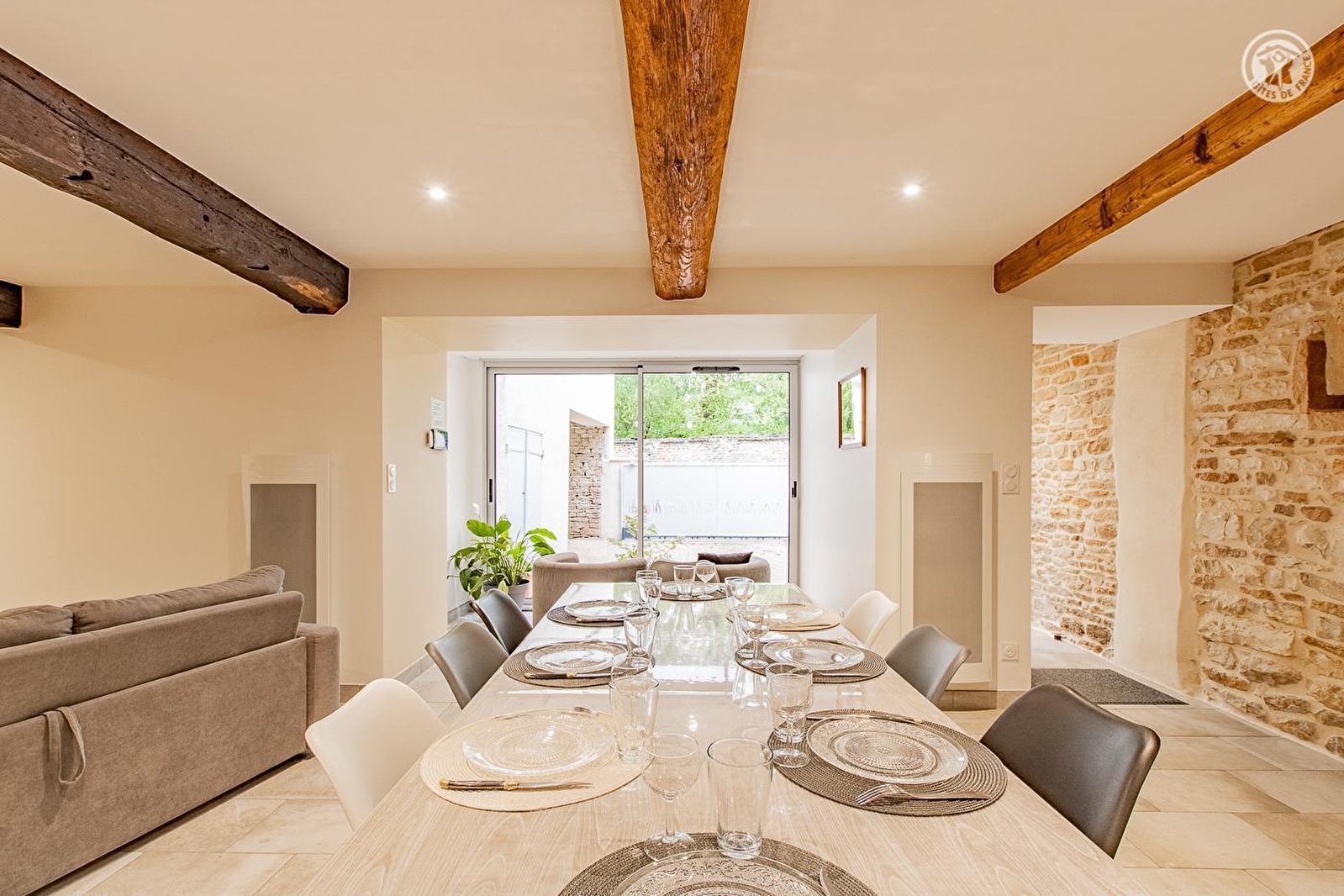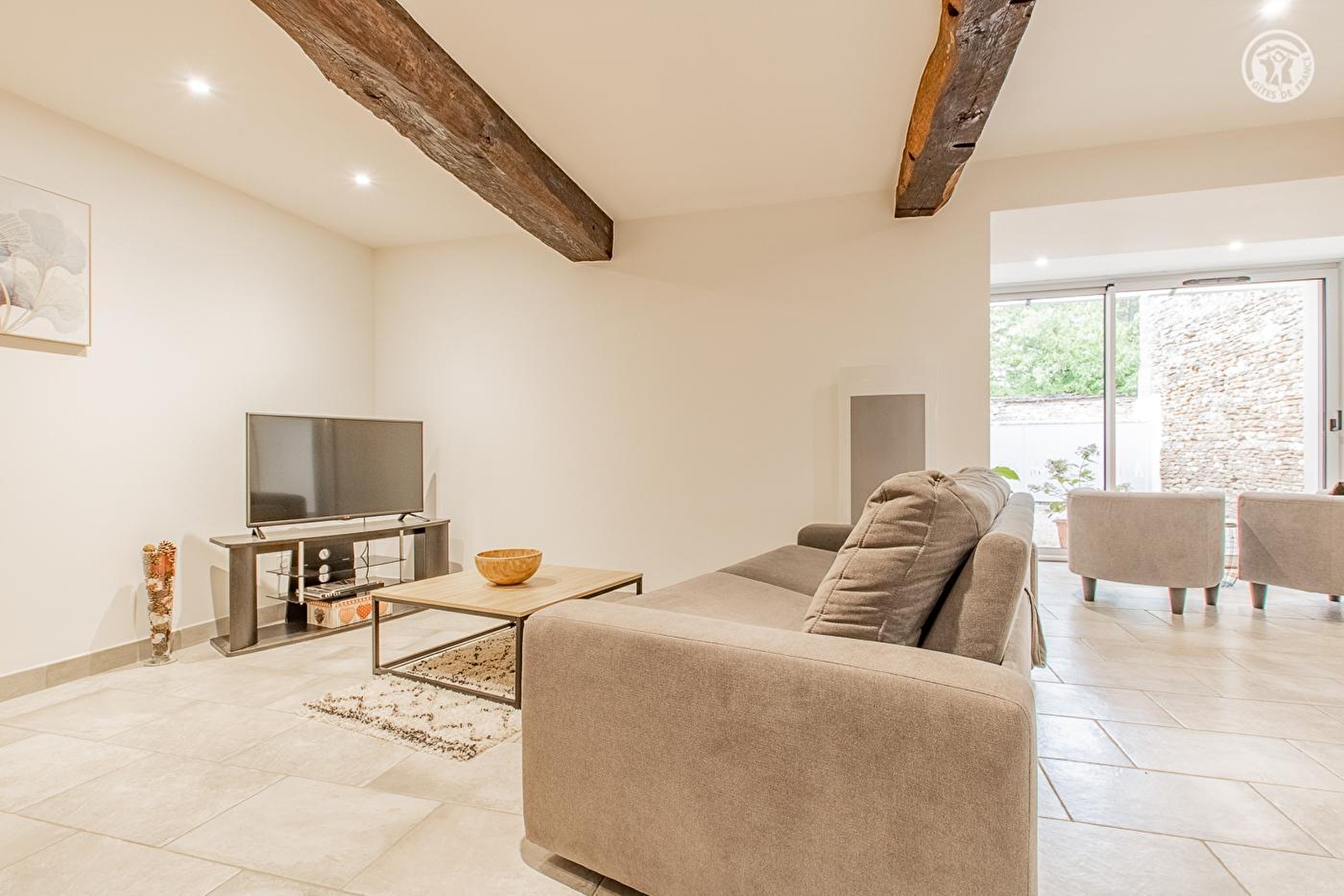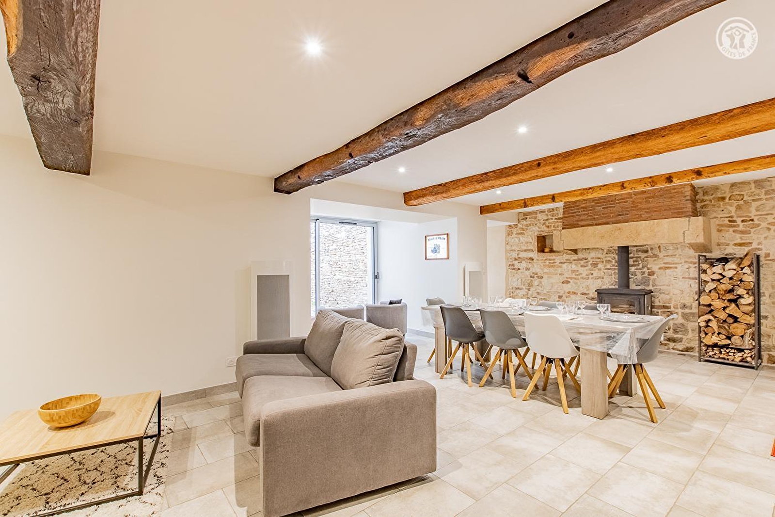 Lyliane vous accueille au sein d'une belle demeure traditionnelle "de bourg" du XVIIIe chargée d'histoire & intégralement réhabilitée - sublimée par une "relecture architecturale" contemporaine soignée - sise au calme en bordure de ruelle, au cœur même d'un pittoresque village viticole de campagne péri-urbaine mâconnaise, pétri de charme & parfaitement préservé (patrimoine notable à découvrir sur place). Totale tranquillité jouxtant une élégante église d'origine romane, à deux pas des vignes & d'un parc paysagé public de 10 ha aux rares arbres centenaires (tulipier de Virginie, cèdre du Liban, sapin d'Andalousie, séquoia géant, calocèdre, pin noir…), œuvre du célèbre jardiner Le Nôtre (créateur des jardins de Versailles), où trône un château du XVIe, aujourd'hui littéral "poumon vert" du bourg (avec aire de jeux pour enfants). Cerclé de vignobles & douces prairies, lové entre deux vastes massifs forestiers sauvages (à parcourir à pied ou VTT), Hurigny profite d'un bucolique écrin champêtre vallonné, totalement apaisant, conjuguant agriculture & pleine nature. Spacieux gîte de très bon confort. Ravissant cachet contemporain, réhaussé par les présences de l'imposant manteau de cheminée en pierres & briques, des poutres & d'un mur en pierres du bâti d'origine. Ambiance zen & très douce. Beaucoup de charme. Intimiste cour close (portail électrique) aménagée en terrasse (bien ombragé l'été) & balcon abrité.