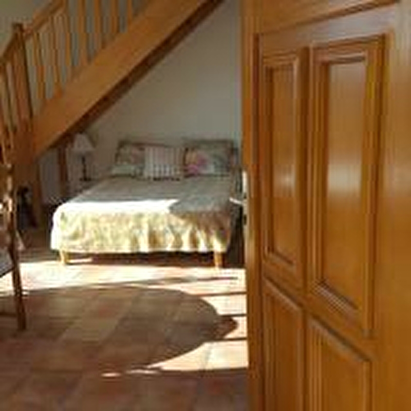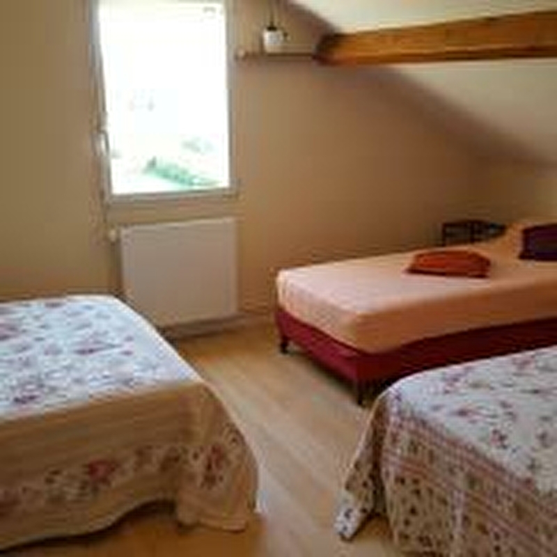 A l'étage : 1 grande chambre sous combles avec 2 lits de 2 personnes. Possibilité d'un lit d'appoint supplémentaire.