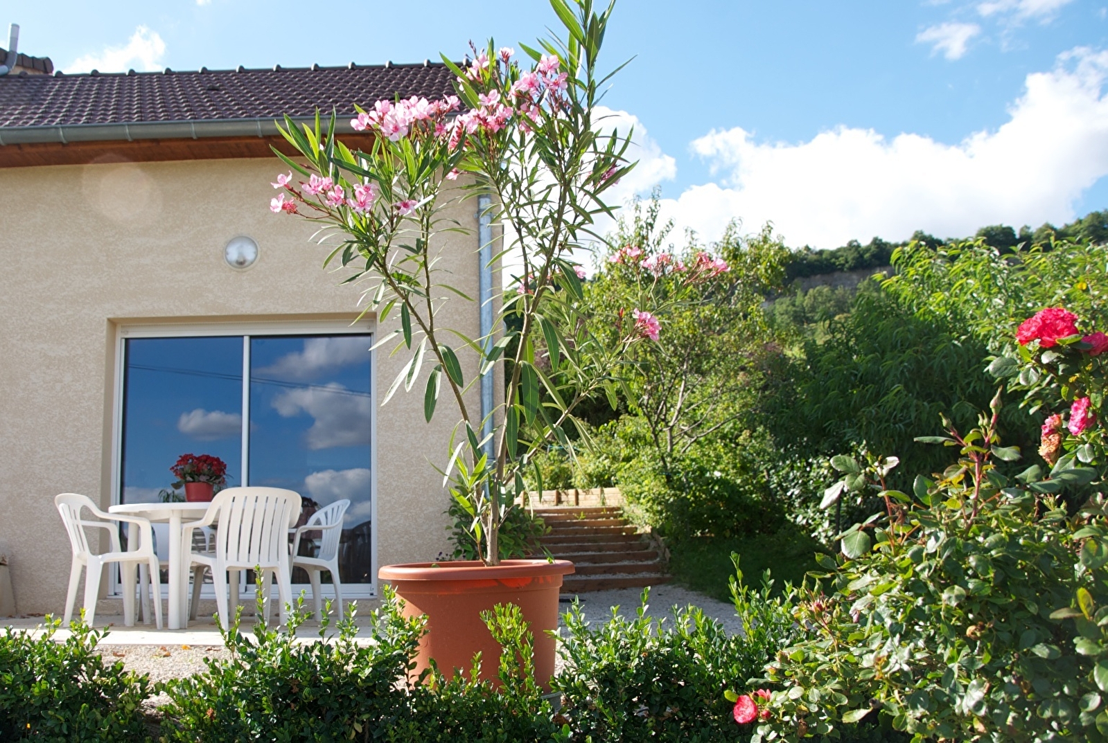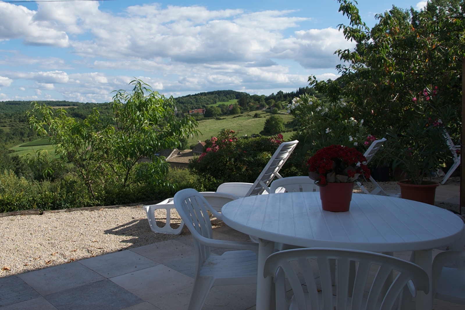 Sans vis-à-vis, la terrasse bénéficie d'une belle vue sur la campagne.