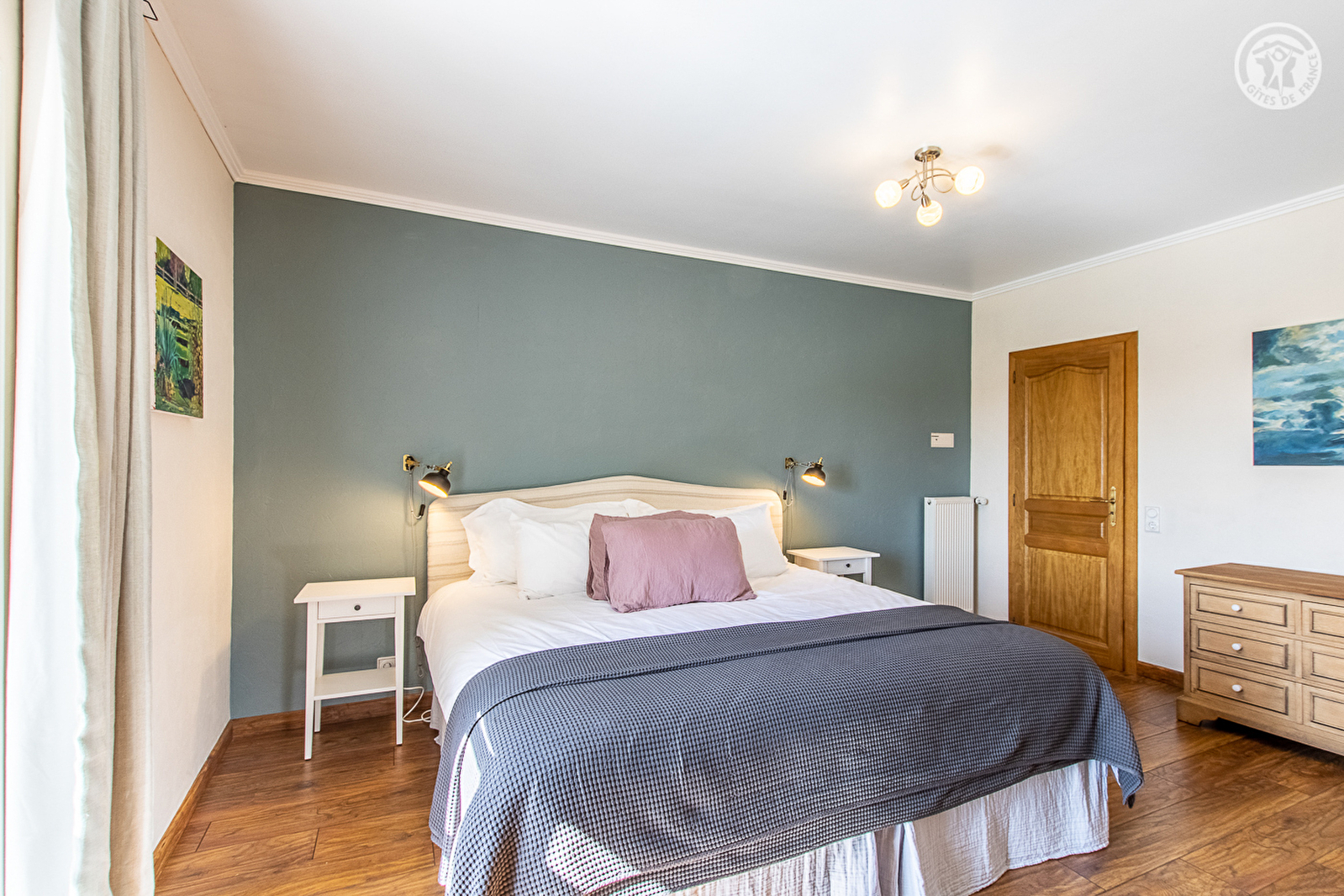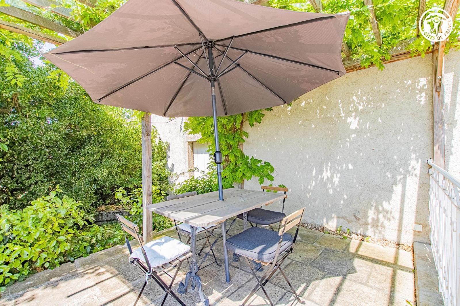 Composition : Maison comprenant 2 gîtes mitoyens (indépendance totale) sur une propriété abritant un troisième gîte et la résidence secondaire des propriétaires. Wifi (fibre). Chauffage PAC. Lave-linge en commun dans buanderie au sous-sol. Rdc : cuisine, séjour-salon (canapé convertible 1 p. 130x190cm), Wc indépendant. 1er étage : 1 chambre (2 lits 1 p. 100x200cm jumelables en lit 2 p. 200x200cm), sdb (baignoire/Wc). Terrasse privative. Terrain en commun (4500m²) avec piscine (5x10m) & balançoire. Local vélos en commun. Parking privé. Commodités dont supermarché 8 km.