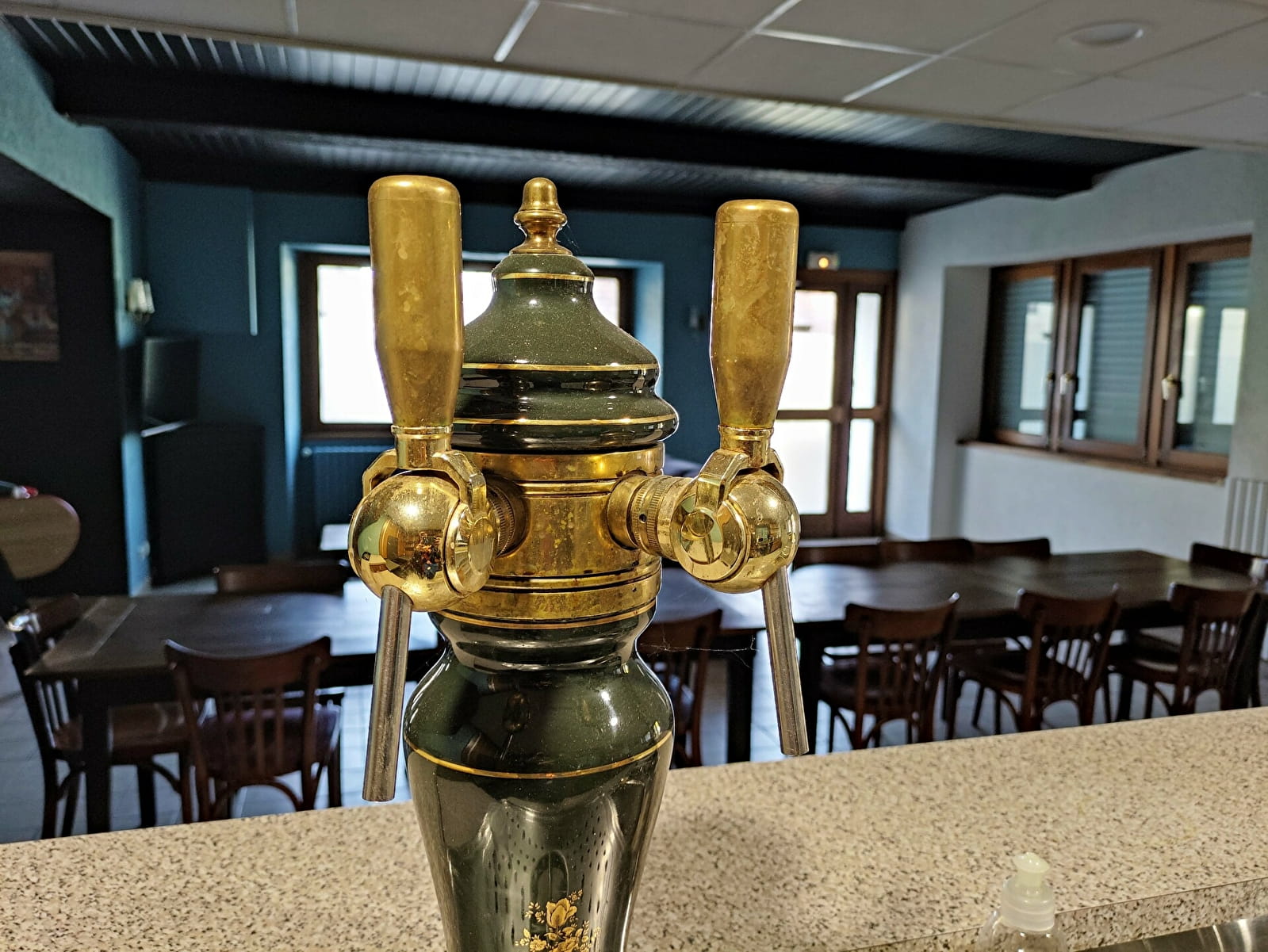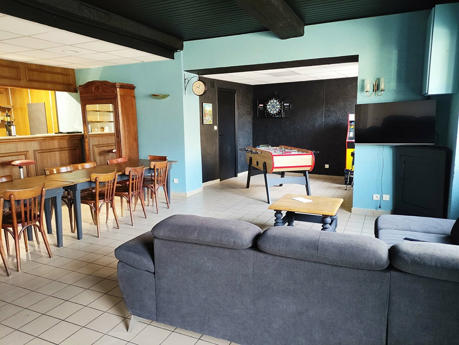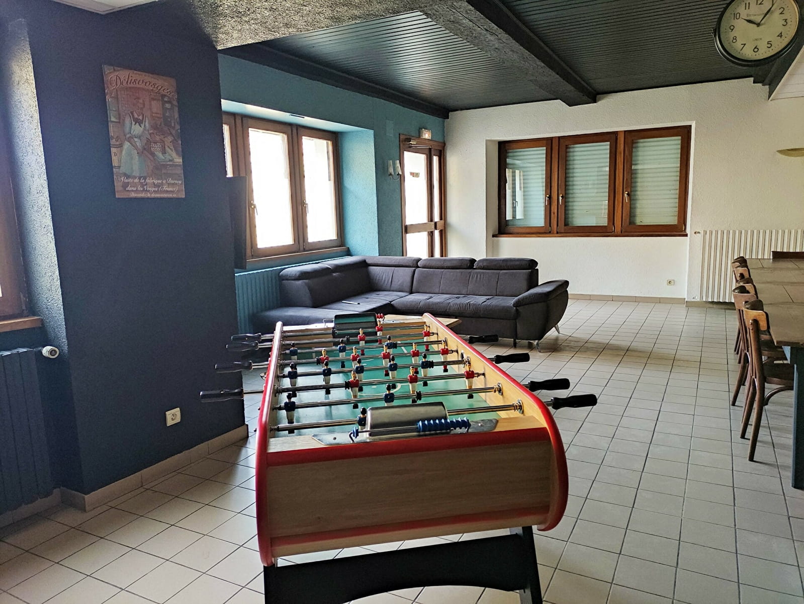 Ancien bar de village, le gîte rénové a gardé l'esprit convivial de son activité précédente. Baby-foot, jeux d'arcade et comptoir de bar ont été conservés au sein de la pièce principale.