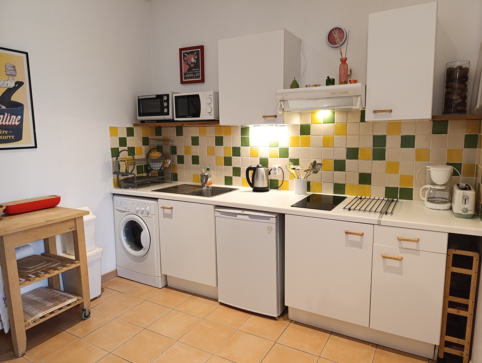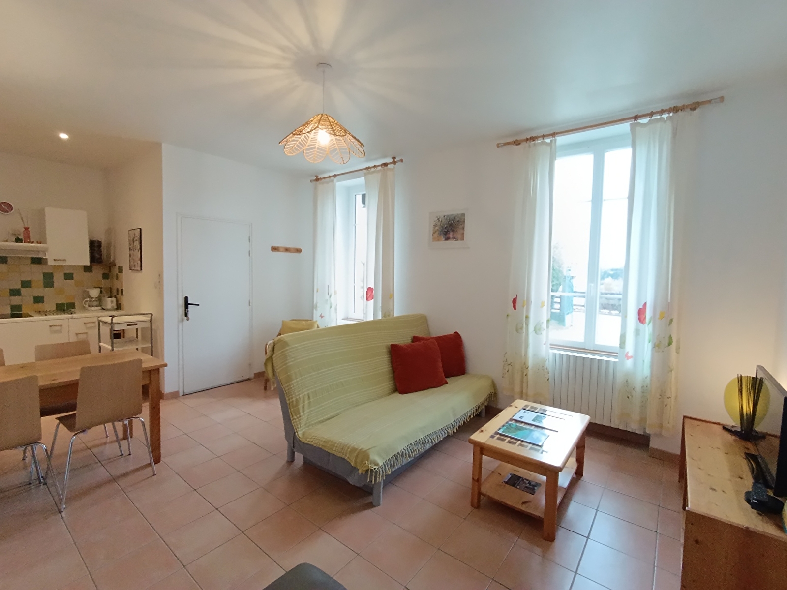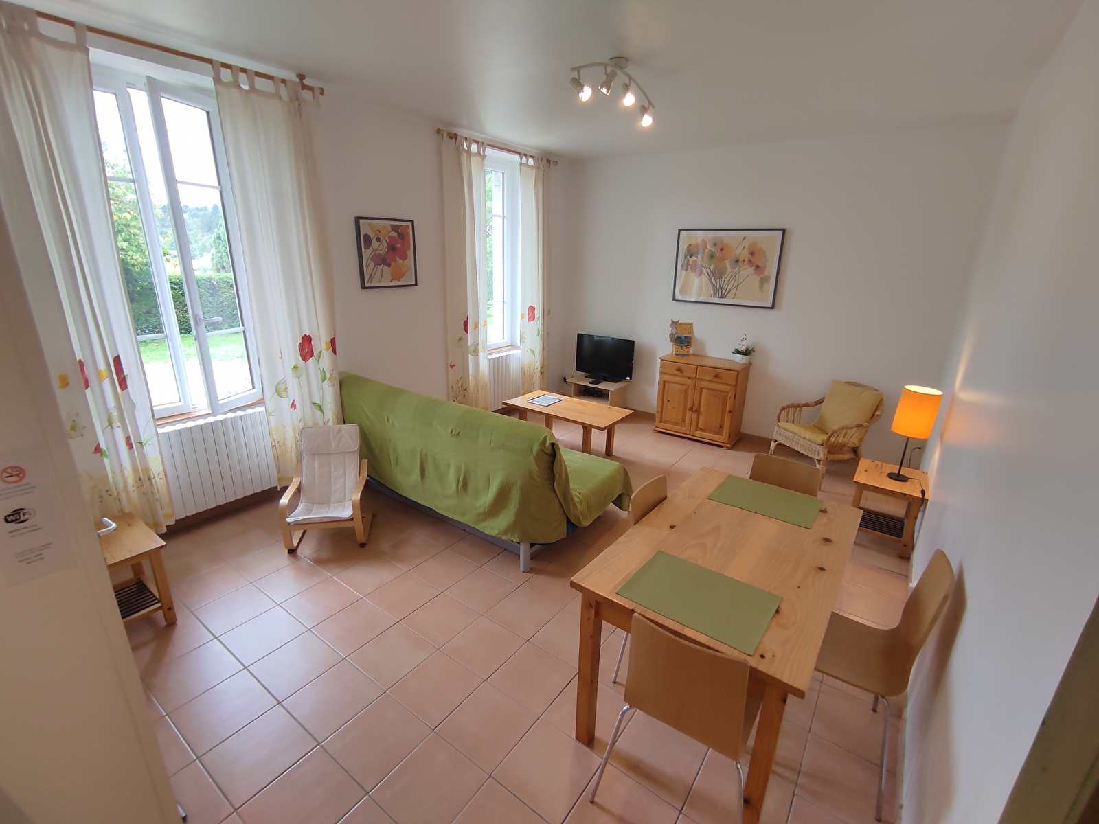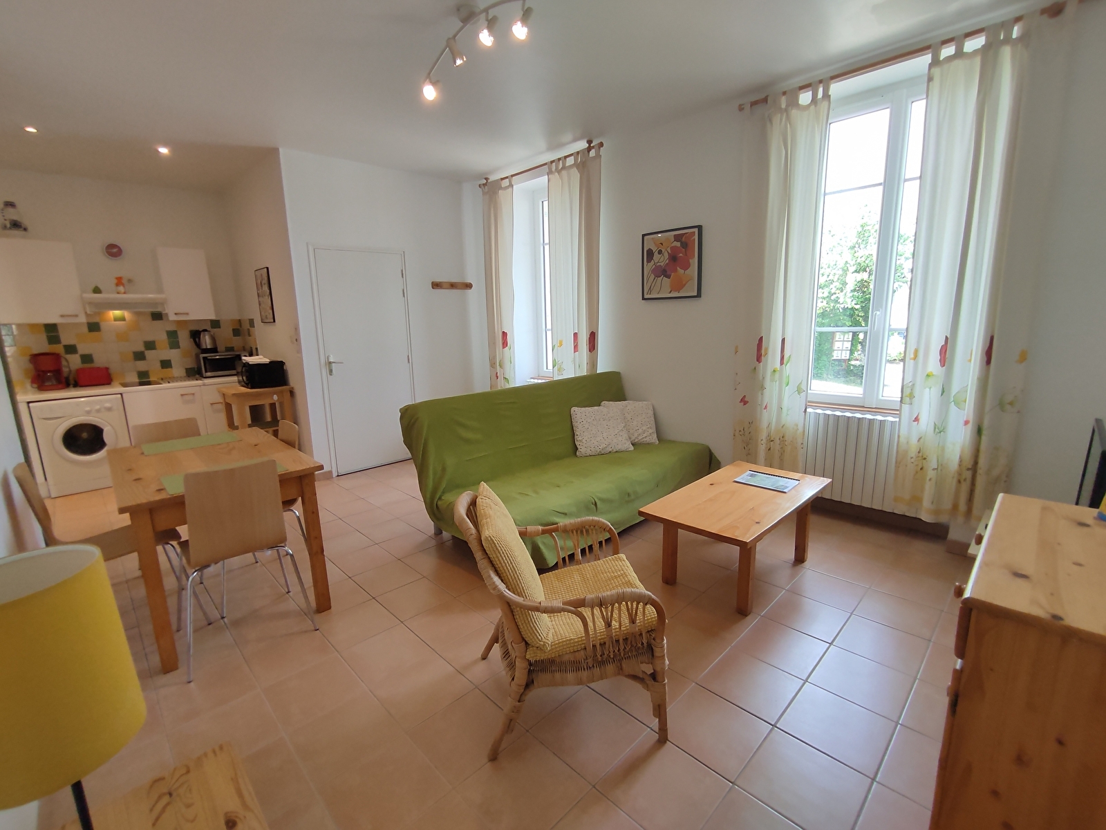 Appartement NARLAY 45m2 au RDC avec accès direct jardin, 1 chambre grand lit 160x200, pièce à vivre avec canapé lit et cuisine ouverte, réfrigérateur avec petit compartiment congélation, mini-four, four micro-ondes, machine à café filtre, bouilloire, toaster, lave-linge, salle d’eau douche, WC séparé