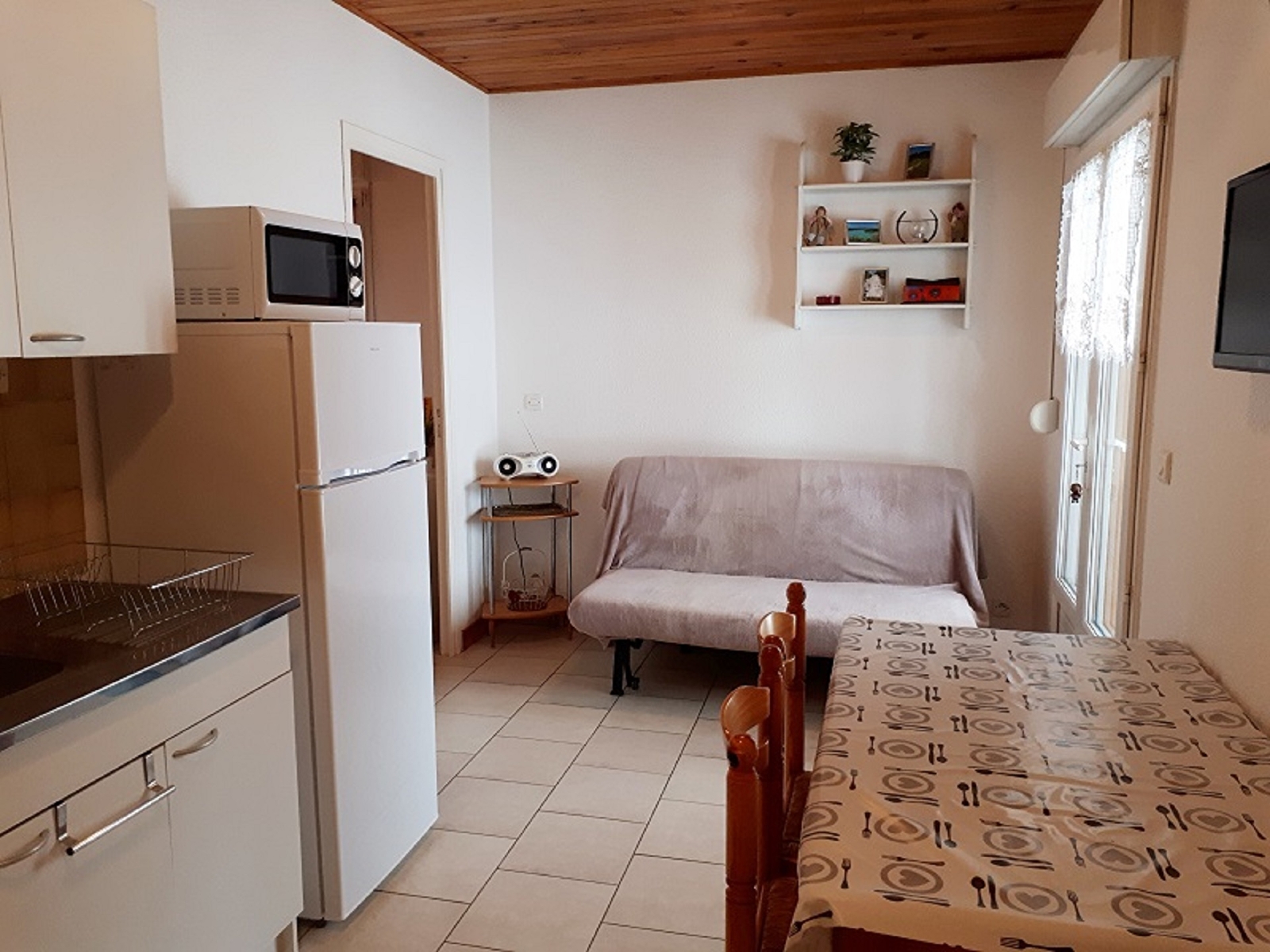 Cet appartement comprend un séjour avec cuisine équipée et un canapé lit, une chambre avec 1 lit deux places, salle d'eau, wc, lave-linge, TV, lecteur DVD, wifi gratuit, terrasse avec salon de jardin, transats, plancha et jeux d'enfants. Dans un environnement calme sans vis-à-vis.