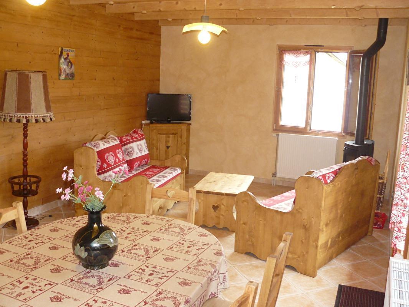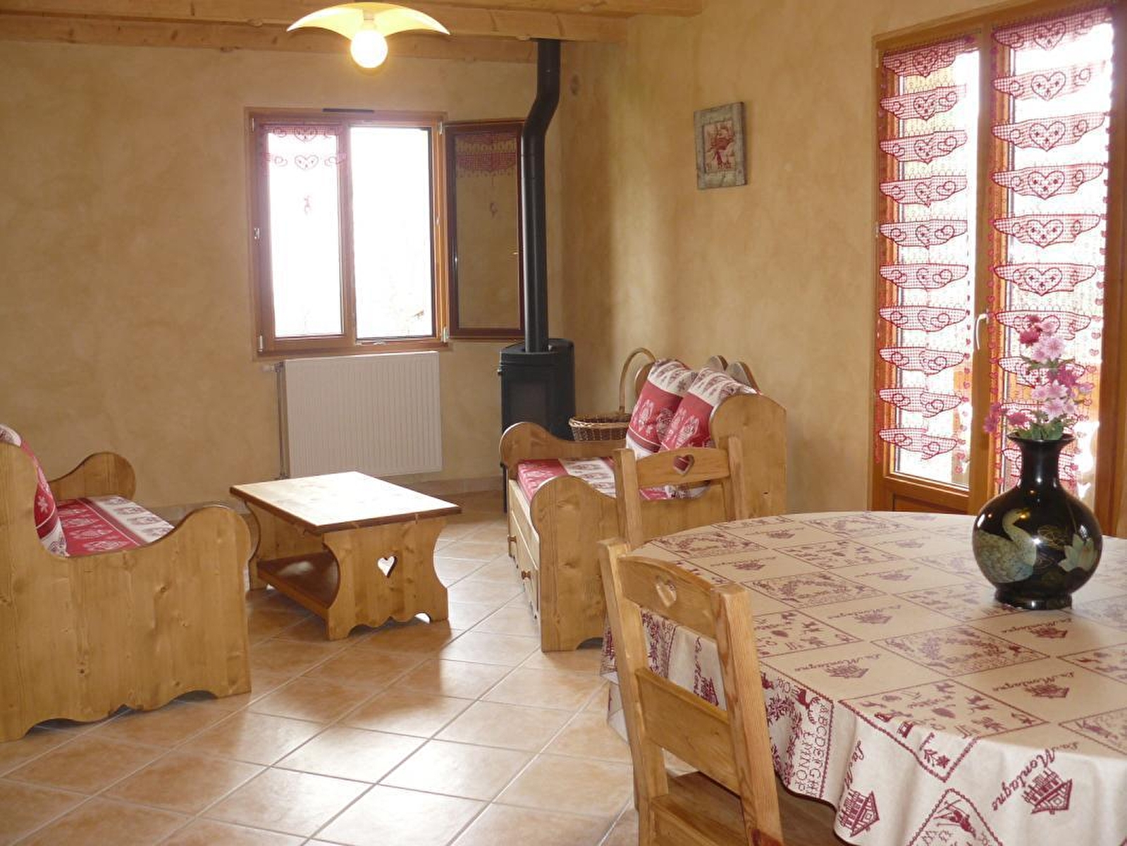 Au coeur du village, ancienne ferme entièrement rénovée composée de plusieurs gîtes. Au rez de chaussé, local à skis ou à vélos. Le gîte se situe au 1er étage avec : cuisine entièrement équipée et ouverte sur le séjour-salon (poêle à granulés), CH1: 1 lit 2 pl, CH2: 3 lits 1 pl, salle d'eau avec douche multi-jet (sèche-cheveux), jeux de lumière et radio intégrée, wc indépendants. Balcon avec petit salon de jardin. Terrain attenant non clos en commun avec les autres gîtes, salon de jardin et barbecue. Interphone et digicode. ACCES WIFI SECURISE GRATUIT. Granulés fournis gratuitement. Parking privé sur place et volets dans les chambres.