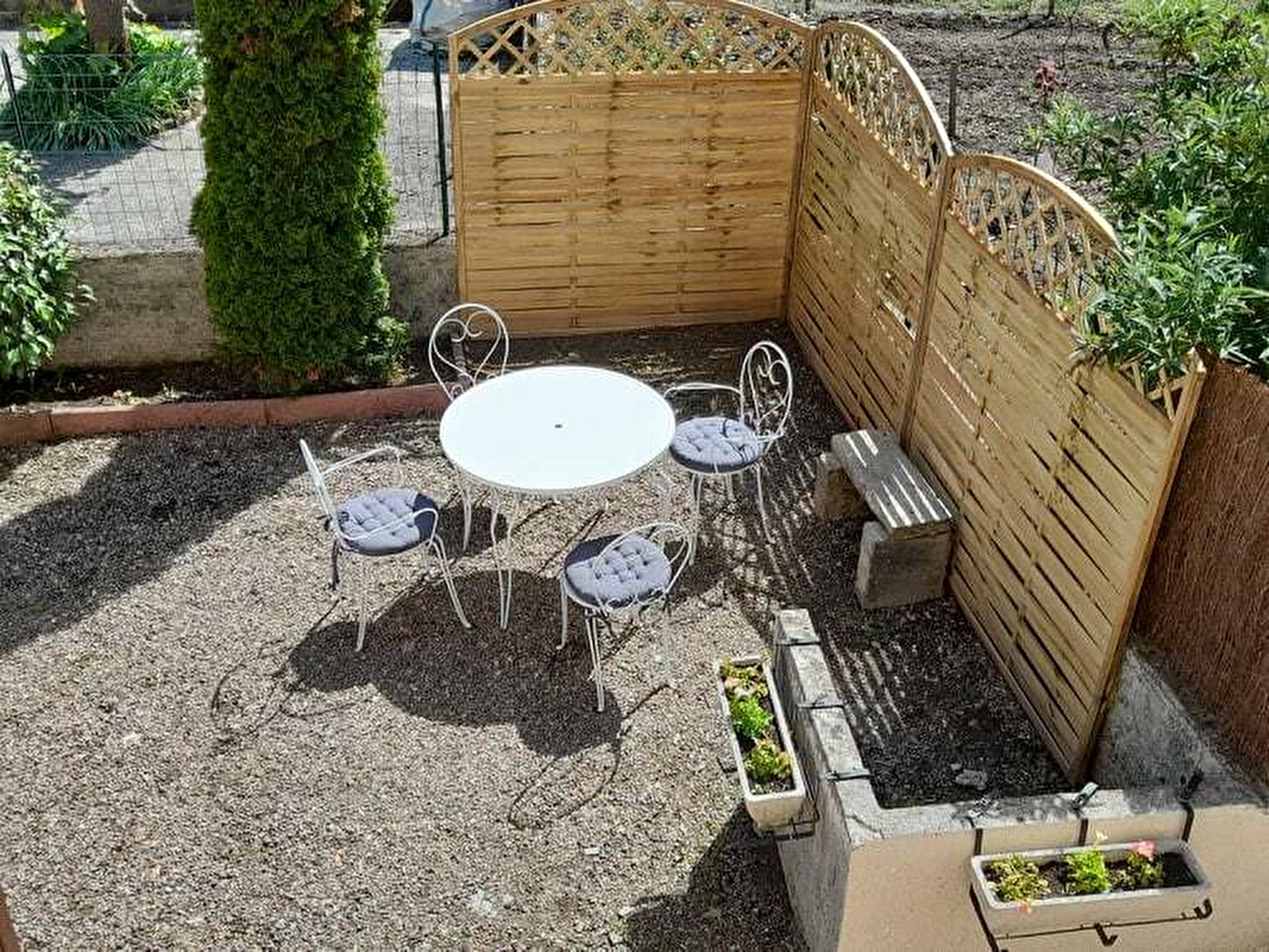 Petite cour d'environ 20m2 avec salon de jardin et abris (pouvant servir pour le stockage des vélos par exemple).