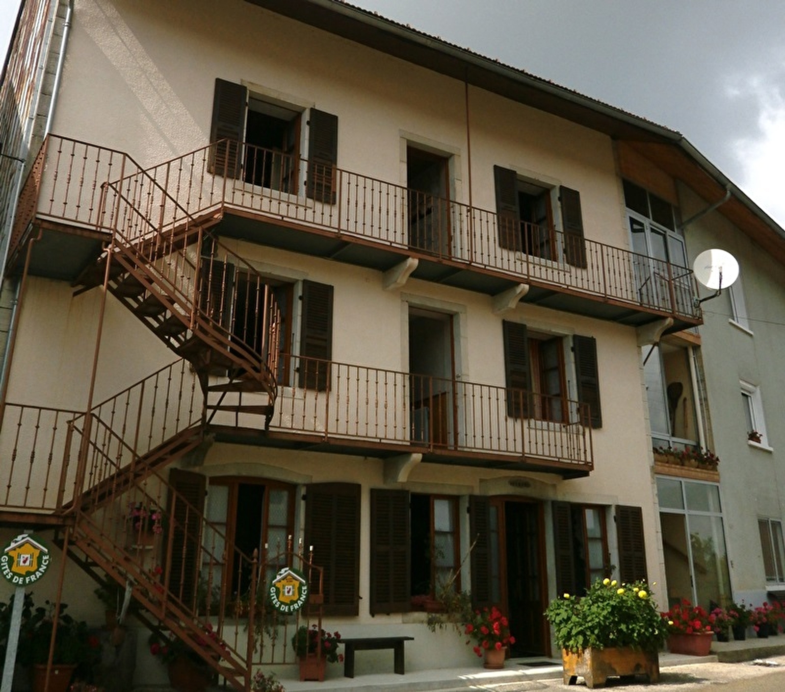 Location de vacances "les Pétunias" pour découvrir le Haut-Jura: au centre du village des Piards, appartement de 70 m² pour 4 personnes au rez de chaussée d'une maison où se trouvent d'autres appartements.