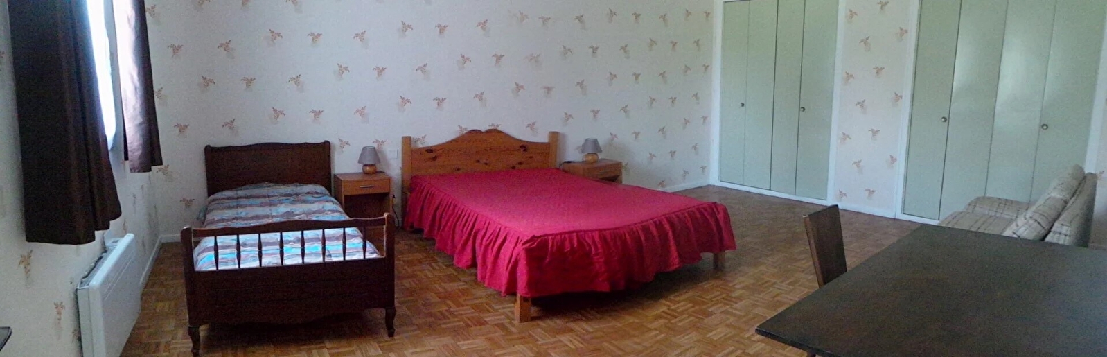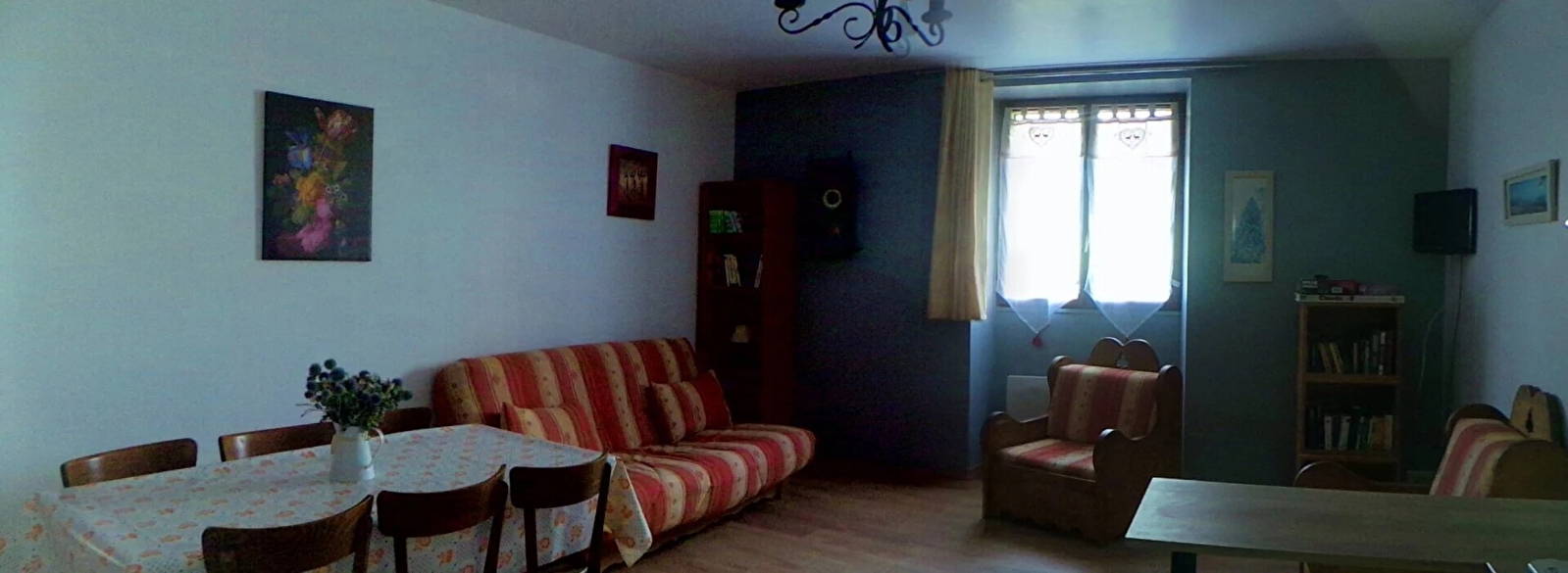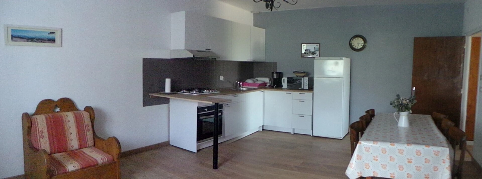 Gîtes Poupet : une surface de 90m2 qui offre une grande pièce de vie avec cuisine équipée, salon et séjour avec un canapé convertible 2 personnes, WC et une salle de bains avec machine à laver en rez-de-chaussée et à l'étage une chambre pour 2 personnes, une grande chambre qui peut accueillir 3 personnes. Exposition nord est.