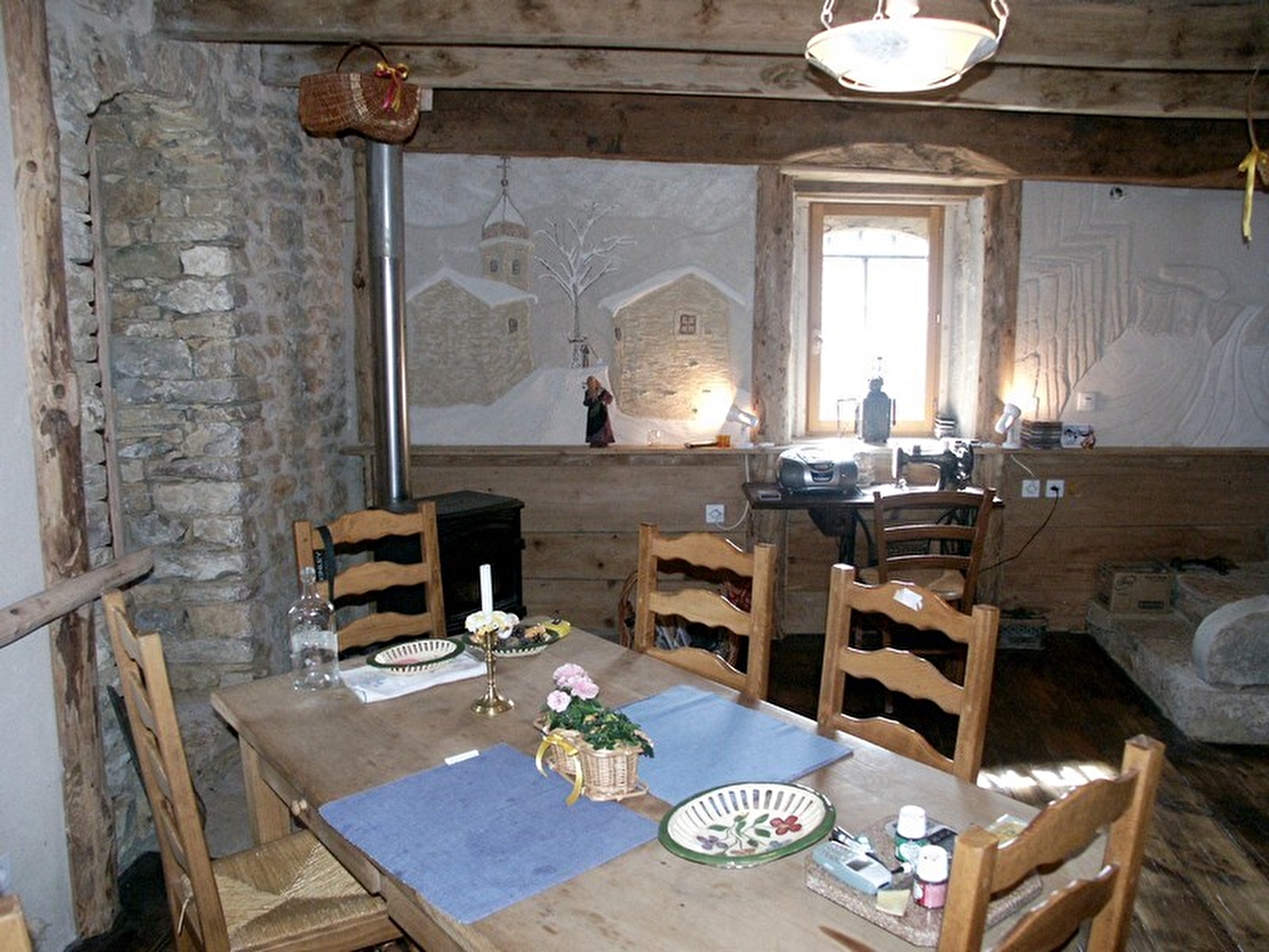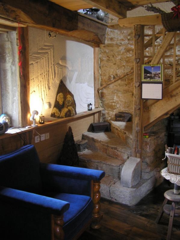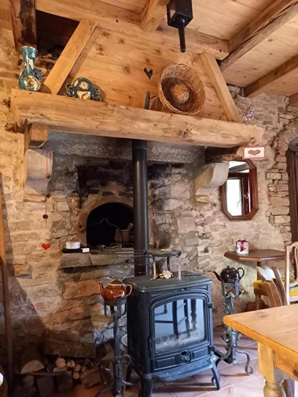 Maison indépendante de caractère, en pierres, entièrement restaurée dans un respect d'authenticité et à base de matériaux naturels de qualité. Cuisine équipée, séjour-salon (poêle-cheminée), lit de berger 1 pers, buanderie/wc. A l'étage : ch1 : 1 lit 2 pl, ch2: 2 lits 1 pl superposés, salle d'eau. Chauffage au bois, terrasse dominant le village avec barbecue et salon de jardin, terrain non clos. Les sols en terre cuite et en vieux châtaignier, les poutres et parquets en chêne, ainsi que la décoration personnalisée rappellent l'ambiance d'un refuge de montagne. Vous serez séduits par les murs peints et les vitraux réalisés par Francis, propriétaire et artiste de la maison. Garage à motos à disposition.