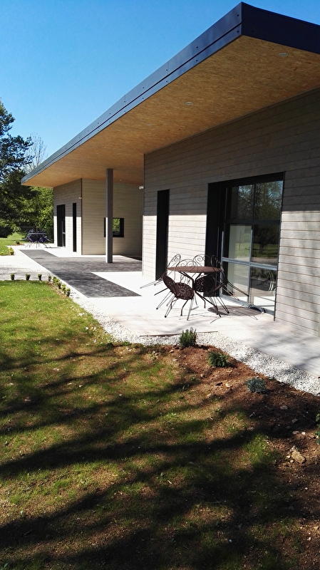 Maison passive (très peu de chauffage en hiver et tempérée en été sans climatisation), adaptée pour la mobilité réduite.