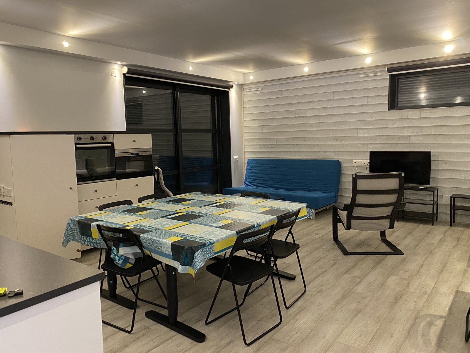 Porte d'entrée et baie vitrée radio-commandées.