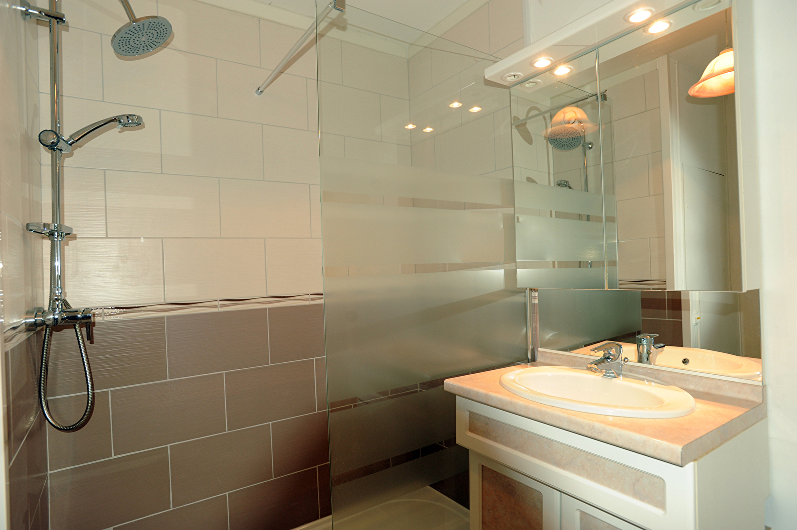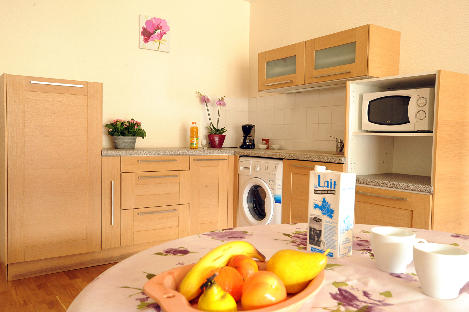Chaque appartement, d'une superficie de 50 m², est agréablement meublé avec dans la pièce principale une cuisine équipée (réfrigérateur, micro-ondes, bouilloire, vaisselle...), d'un espace séjour avec table à manger et chaise et d'un coin salon (canapé, télévision et petite table). Un lit d'appoint peut être ajouté, sur demande. Dans la chambre se trouve un lit 2 personnes et des rangements, ainsi que l'accès à la salle de douche, avec toilette. L'appartement donne soit sur un jardinet (en rez-de-chaussée) soit sur un petit balcon (au 1er étage, accessible par un ascenseur).
