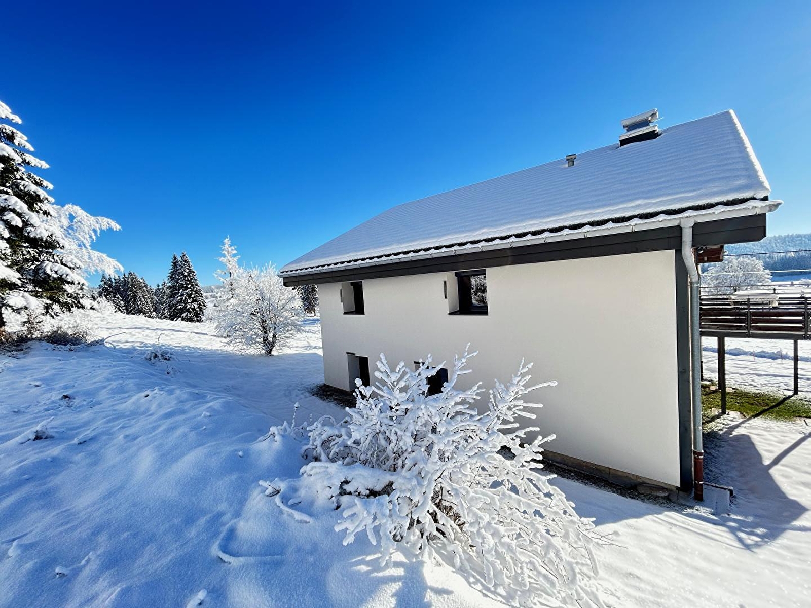 Cet appartement se situe au premier étage d'une maison comprenant 1 autre gîte au RDC dans un environnement calme avec une vue panoramique sur les montagnes, les combes et les forêts. Il se compose d'une cuisine intégrée toute équipée, d'un salon avec TV et lecteur DVD, d'une chambre double avec 1 lit en 160, d'une mezzanine avec 3 lits simples en 90, d'une chambre double avec 1 lit double en 140, de 2 salles d'eau et de 2 WC indépendants. Côté extérieur, une terrasse suspendue vous permettra d'admirer la vue exceptionnelle et de profiter de la quiétude des lieux. Vous disposerez d'un salon de jardin avec barbecue. Idéalement situé, avec le départ depuis le gîte des pistes de ski de fond et des sentiers de randonnées, les pistes de ski de descente à moins d'un kilomètre, et non loin de la piscine de Morbier, c'est un gîte idéal pour des vacances farniente et/ou sportives. Possibilité d'accueillir une ou 2 personnes supplémentaires sur demande auprès des propriétaires. Pour vous retrouver en famille ou entre amis, possibilités de louer les 2 gîtes (G2345 et G2346) pour une capacité totale de 13 personnes. Ce gîte peut se louer pour 2 à 5 personnes hors vacances scolaires à un tarif spécial sur demande auprès du propriétaire.
