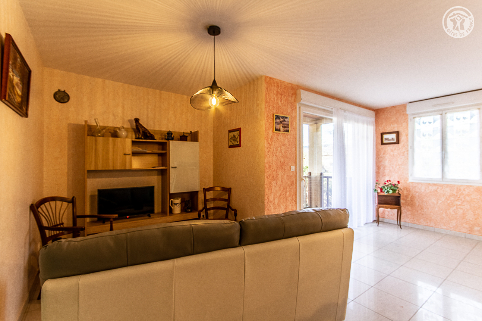 Composition : Gîte en rdc surélevé (2 marches) d'une petite résidence comprenant plusieurs appartements. Chauffage électrique. Séjour-cuisine-salon, 3 chambres (1 lit 2 p. 140x190cm / 1 lit 1 p. 90x190cm / 1 lit 2 p. 140x190cm), salle d'eau (douche), wc indépendant. Balcon-terrasse abrité + parking + garage/local vélos privatifs. Commerces et services à 200m. Golf 21 km. Gares TGV : Mâcon 21 km, Creusot 48 km.