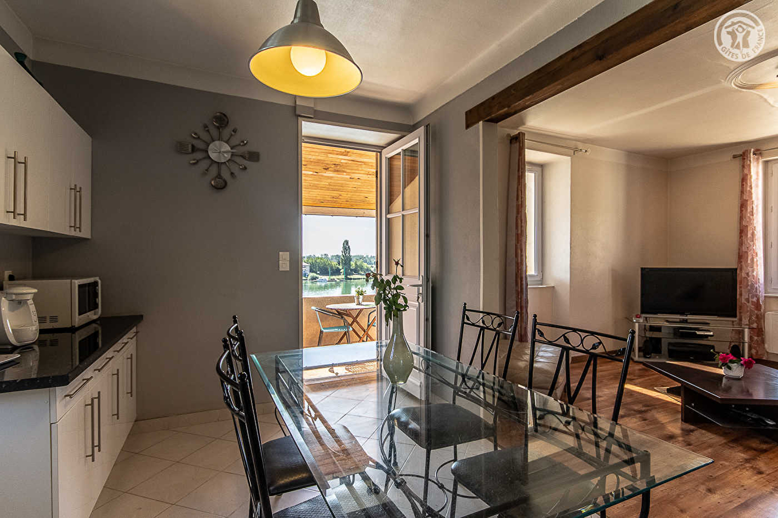 Fernando et Agueda vous accueillent au sein d'une charmante maison de pays de 1843 intégralement restaurée & chargée d'histoire - l'une des plus anciennes bâtisses référencées des lieux - sise sur une propriété close de 1500m² particulièrement soignée (portail électrique & grande cour pavée), dotée d'une exceptionnelle rente de situation, lovée sur les rivages de la Saône en bordure de l'historique chemin de halage qu'occupe aujourd'hui la voie bleue (accès direct !). Au calme, au cœur d'un ravissant hameau résidentiel blotti à flanc de coteau exposé, dominant le fleuve en "balcon". Situation privilégiée entre ville & campagne au creux d'un cadre bucolique enchanteur, littéralement reposant & relaxant, en toute proximité de l'intégralité des commodités. A 7 km du centre-ville de Mâcon la plus méridionale cité de Bourgogne, berceau du célèbre poète Lamartine (labellisée "Station Classée de Tourisme") riche d'un patrimoine historique notable (Église St-Pierre, maison de bois, Hôtel Dieu, cathédrale romane St-Vincent, couvent des Ursulines…) et de charmants quartiers piétons à découvrir. Spacieux gîte de bon confort. Chaleureux cachet campagnard contemporain à l'ambiance douce. Agréable balcon-terrasse panoramique abrité. Jardin très soigné, végétalisé et fleuri (partagé avec les propriétaires) avec balançoire, espaces ludiques de repos et petit poulailler (sans nuisance). Belle vue dégagée sur la Saône et la campagne environnante (plaines de la Bresse bourguignonne). Magnifique panorama & paysage.