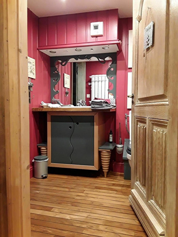C’est un gîte confortable, dans une ambiance chalet tout de bois vêtu, situé dans la maison du propriétaire avec une entrée indépendante. Ce gîte vous enchantera avec tous ces détails personnalisés et faits à la main. La décoration raffinée est à l'image du jardin : fraîcheur et sérénité de la chambre en gris et blanc, chaleur et douceur de vivre dans les autres pièces où s'invitent le bois naturel et le rouge des étoffes.