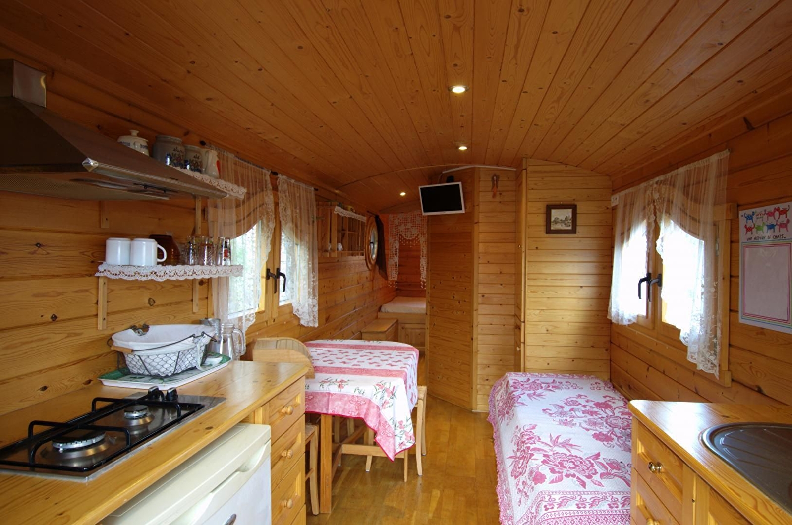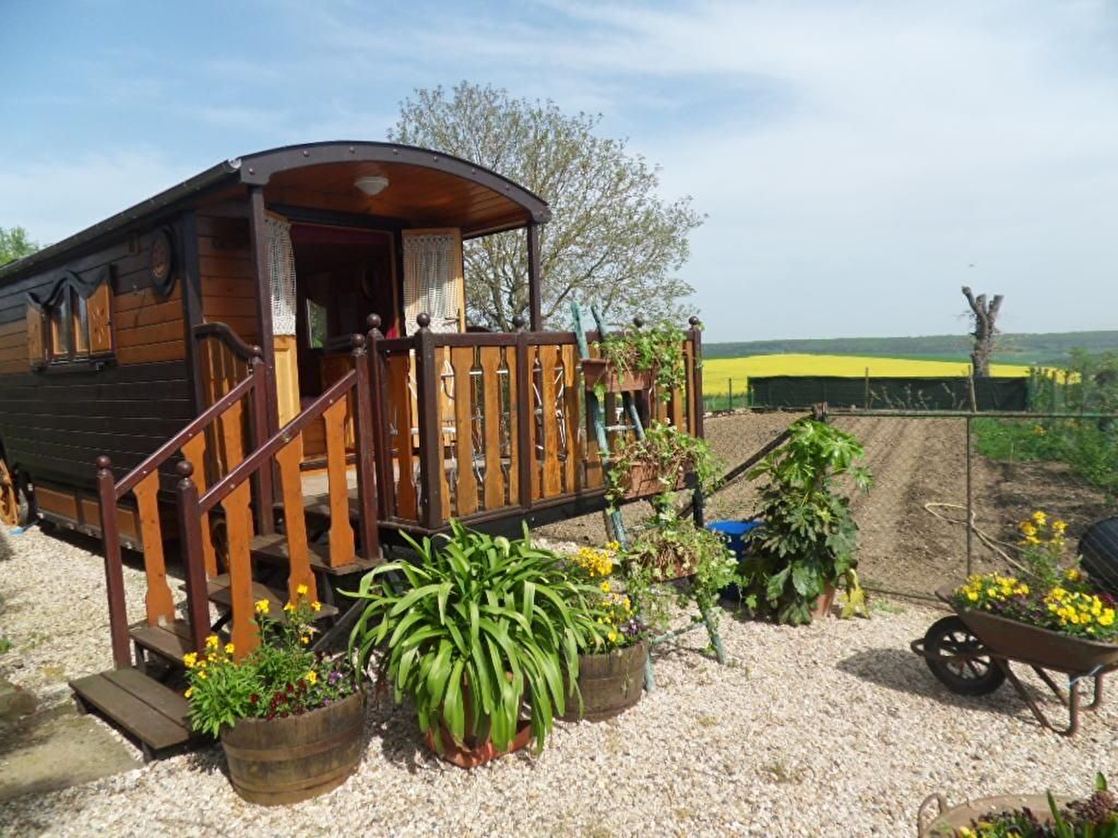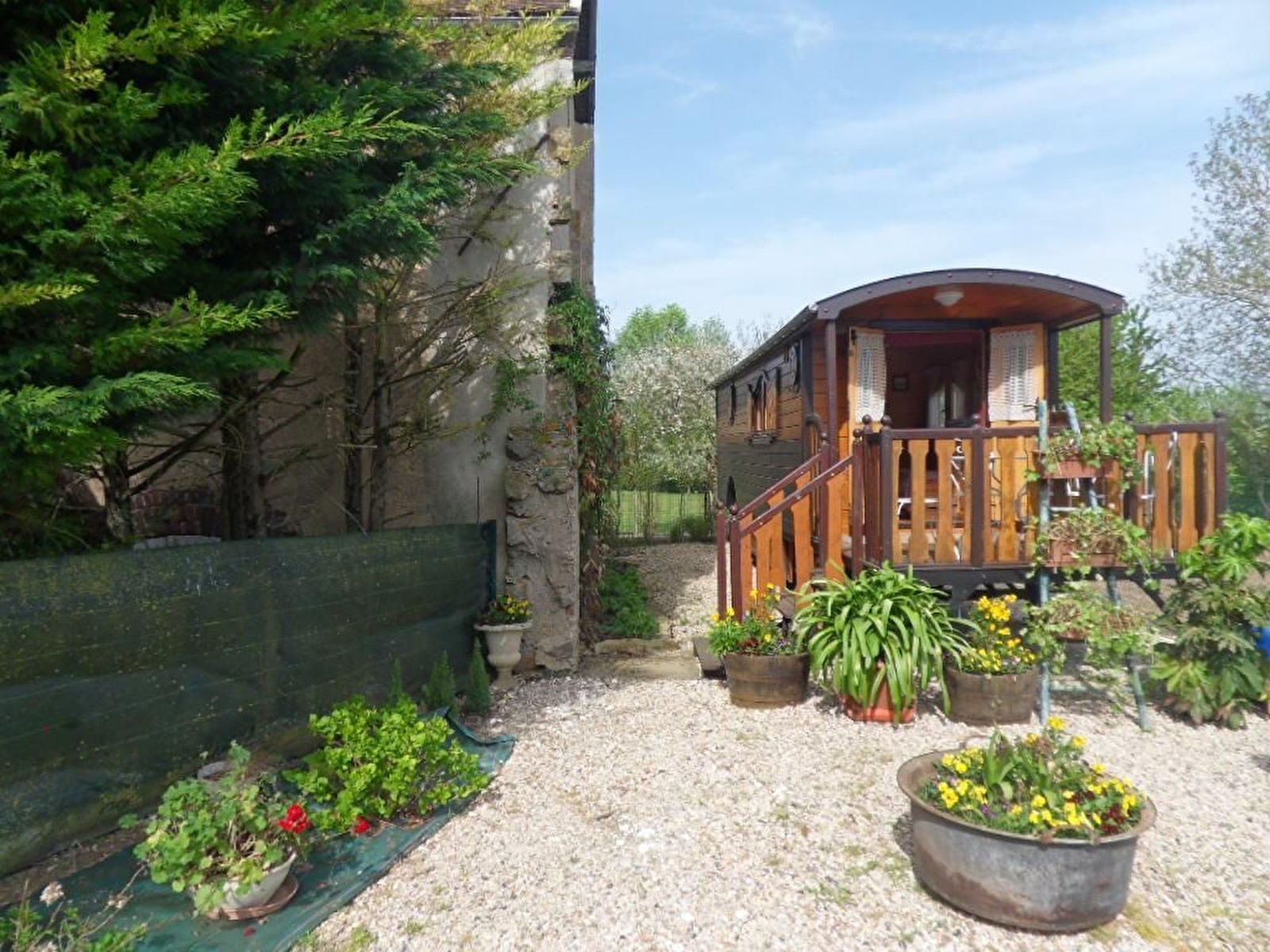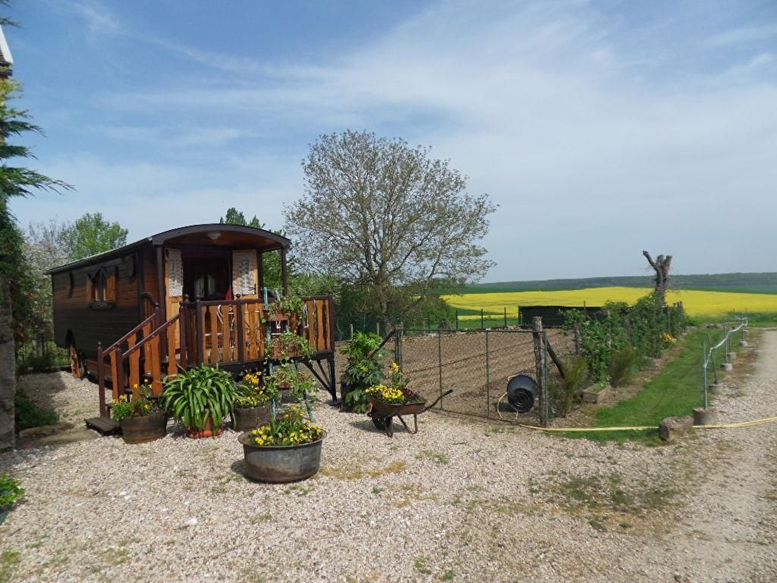 Située à quelques kilomètres de Sens, la Roulotte de Bohême est installée sur un petit terrain jouxtant les bâtiments agricoles. La pièce de jour vous permettra de préparer et prendre vos repas. Le canapé convertible permet d'accueillir 2 personnes (enfants) en complément du lit double en alcôve. Salle d'eau avec wc. La terrasse extérieure est face à la nature et la plaine sénonaise.