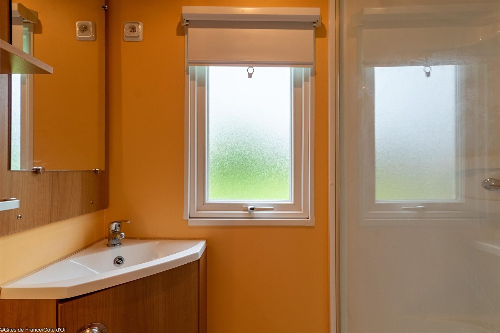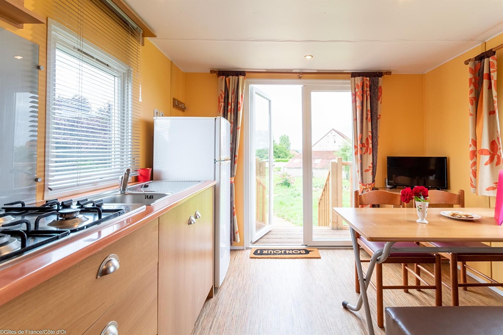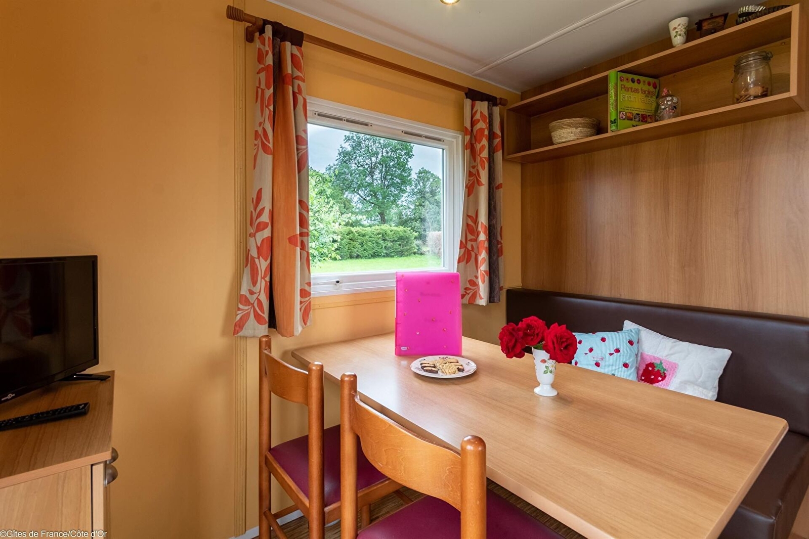 Elles se composent d'une pièce à vivre avec cuisine (4 plaques, micro-ondes, réfrigérateur, congélateur et cafetière) et espace repas TV. Une chambre avec un lit 140 et une chambre avec 2 lits de 80 superposés. Salle d'eau et toilette. Chaise haute et lit parapluie sur demande.