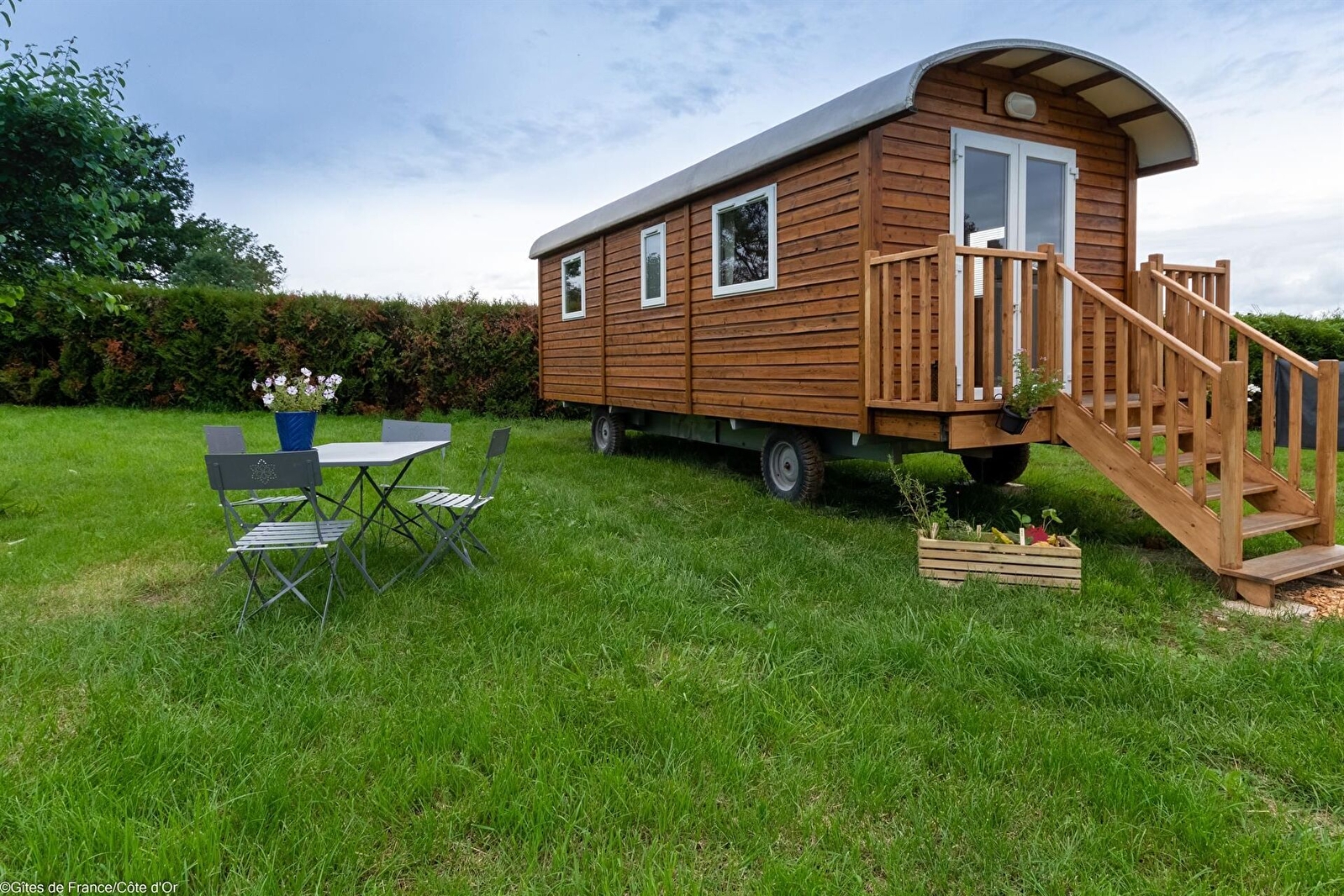 Au coeur d'un beau terrain arboré d'un hectare, profitez d'un séjour au vert en famille avec les roulottes Fraise et Framboise.