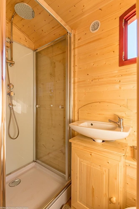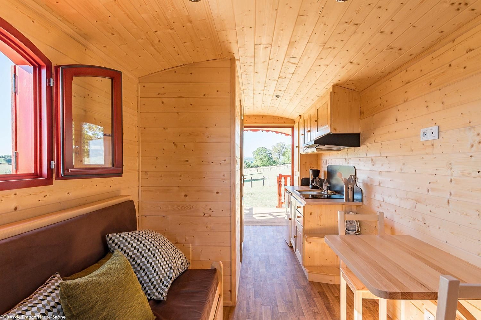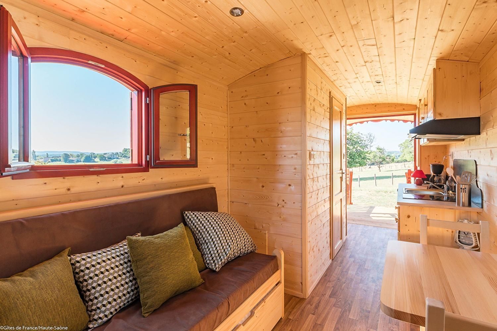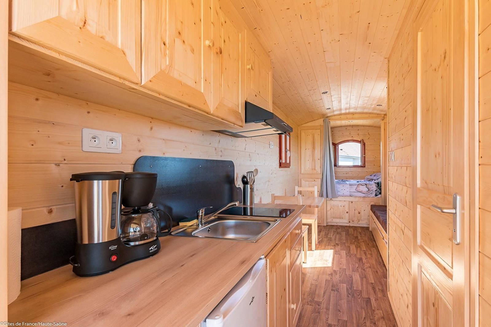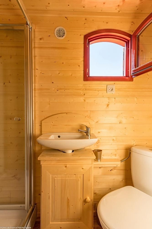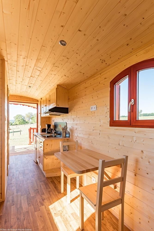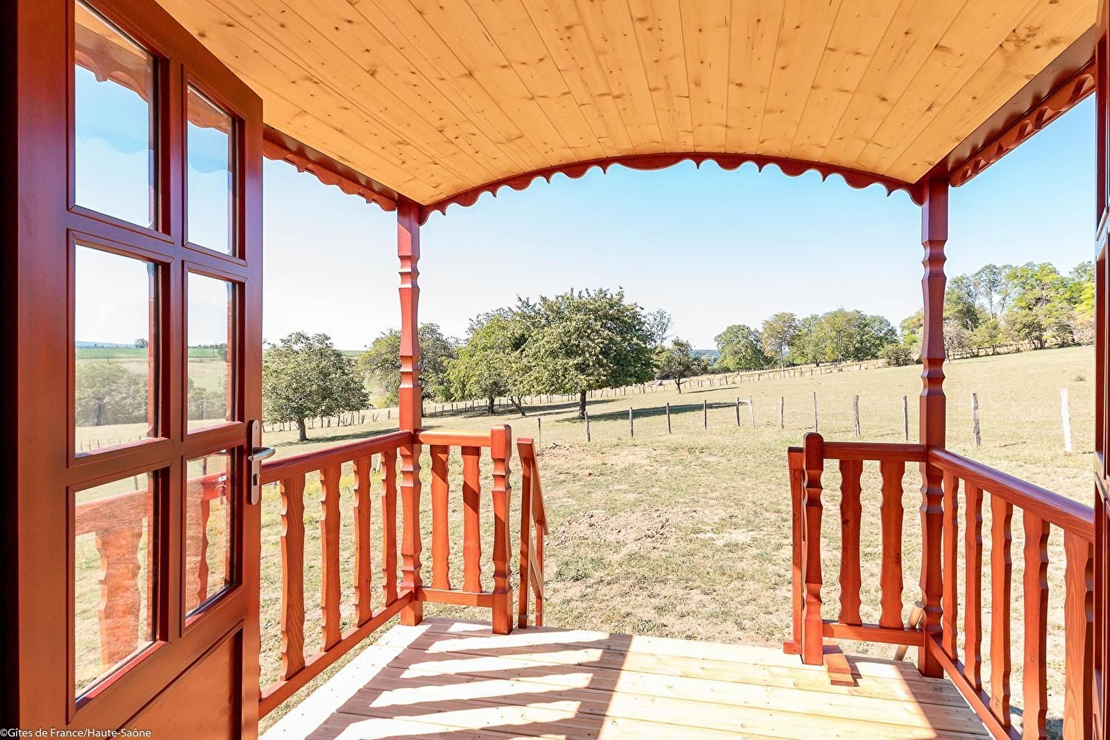 On se sent tellement bien ici ! Un petit coin de paradis dans cette jolie roulotte Comtoise. Depuis la terrasse couverte en bois, régalez-vous par la vue, le calme. La roulotte comprend : terrasse avec escalier (4 marches), espace cuisine, un canapé lit gigogne (2 lits en 80/190), un espace nuit en alcôve (avec 1 lit 2 personnes en 140/190). Salle d'eau avec douche et WC. Mise à disposition d'une cabane en bois de forme atypique (non chauffée), proposant un lit double (140/190) pour les personnes logeant dans la roulotte. Piscine de 4 X 7 m, chauffée et sécurisée, ouverte du 1er mai au 30 septembre (selon météo), à partager avec les propriétaires et les locataires du gîte situé sur la propriété. Terrain de pétanque, table de ping-pong, panier de basket. Salon de jardin et barbecue. Draps fournis. Charges comprises. Chauffage électrique. Internet WiFi. La roulotte peut également être louée avec le gîte, pour un total de 8 personnes (contacter la propriétaire).