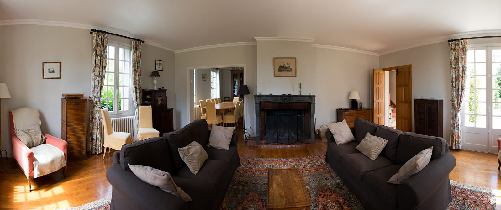Offrant huit chambres (possibilité de loger 15 personnes), 7 salles de bain ou d'eau, une salle de jeux, une salle télévision avec lecteur DVD, un bureau avec accès internet, une grande pièce de vie avec cheminée et une cuisine équipée, une buanderie avec machines à laver et une sécheuse.