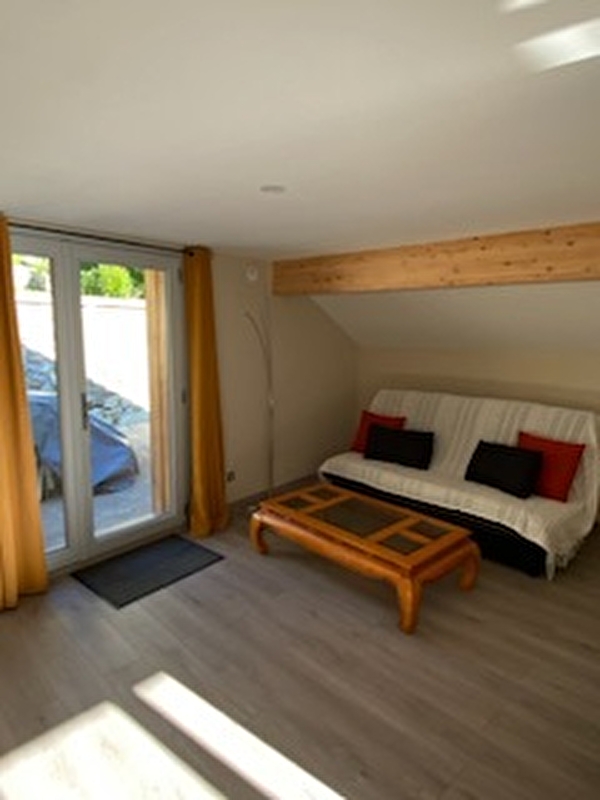 A l'étage: coin salon donnant sur la chambre disposant d'un grand espace de rangement + terrasse donnant sur la nature et la côte sous le fort Saint-André.