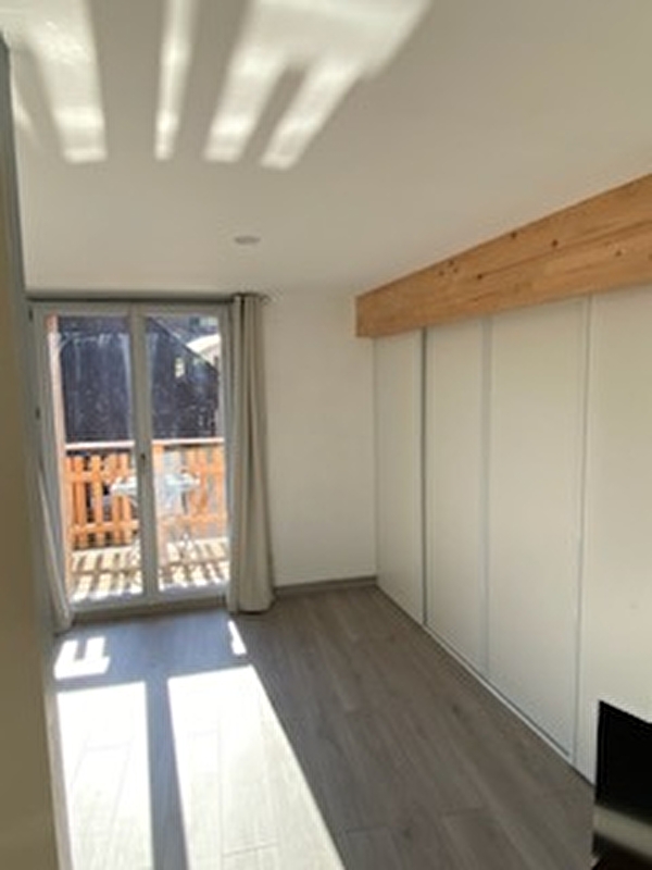 Premier niveau: salle à manger avec coin cuisine + salle d'eau avec douche + grande terrasse donnant sur la rue Saint-Nicolas.