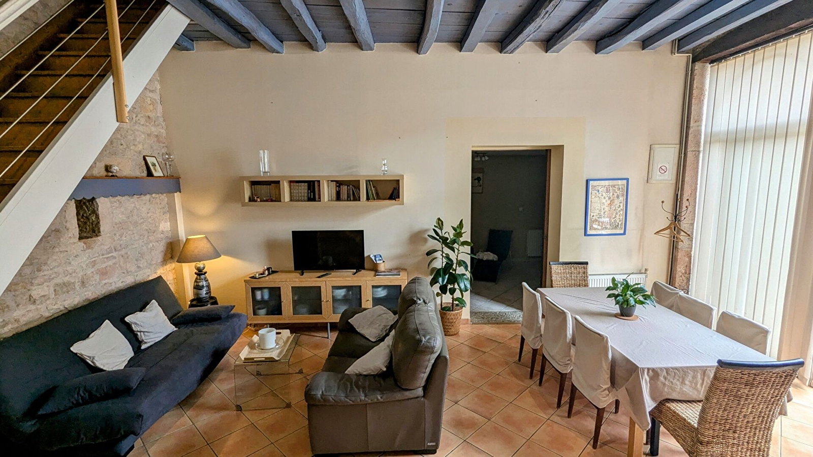 Sur la route des grands vins de Bourgogne, le gîte Saint Vincent se situe dans une ruelle calme. Pierre et bois font le charme de cette maison de village, aménagée sur 2 niveaux. Rez-de-chaussée : vaste séjour avec cuisine équipée surélevée et ouverte sur le salon et la pièce de vie . Espace propice à la détente et au bien être avec spa 5 places. Salle d'eau avec WC.