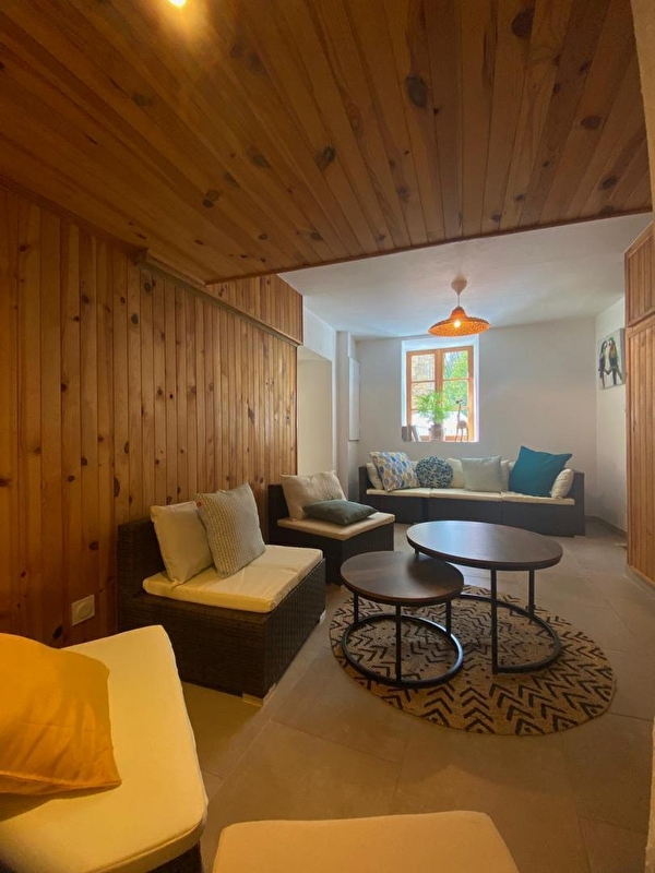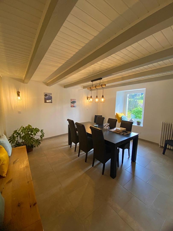 Cette maison mitoyenne située dans une impasse, au calme, se compose au rez-de-chaussée : d'une pièce de vie avec cuisine toute équipée (qui offre un accès direct à la terrasse) et salle à manger, d'un coin salon avec TV et d'un WC. A l'étage, une chambre avec un lit double (160*200) et douche privative, une chambre avec 1 lit double (160*200) et une troisième chambre avec 3 lits simples (90*190), une salle d'eau avec douche, un WC indépendant. Côté extérieur, vous pourrez profiter de la terrasse aménagée avec salon de jardin ,transats et barbecue. Idéalement situé, vous pourrez rejoindre la plage de la Mercantine (lac de Vouglans) et le lac Genin en une vingtaine de minutes, découvrir la ville de St Claude réputée pour la pipe et le diamant, c'est également le point de départ du circuit ferroviaire de la ligne des hirondelles, qui vous fera découvrir des paysages époustouflants en rejoignant Dole. Les Hautes-Combes, pour les amateurs de randonnées, de ski de fond, ou tout simplement pour contempler les immenses combes et forêt d'épicéas se situent à une quinzaine de minutes. Note : dimension des couettes pour lit 160*200 : 260*240