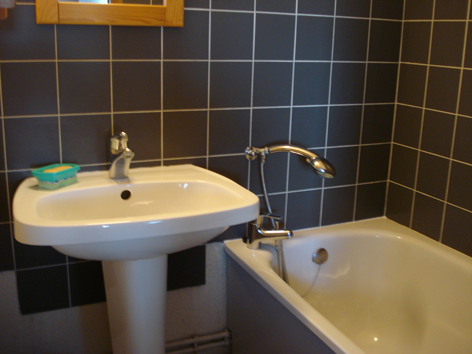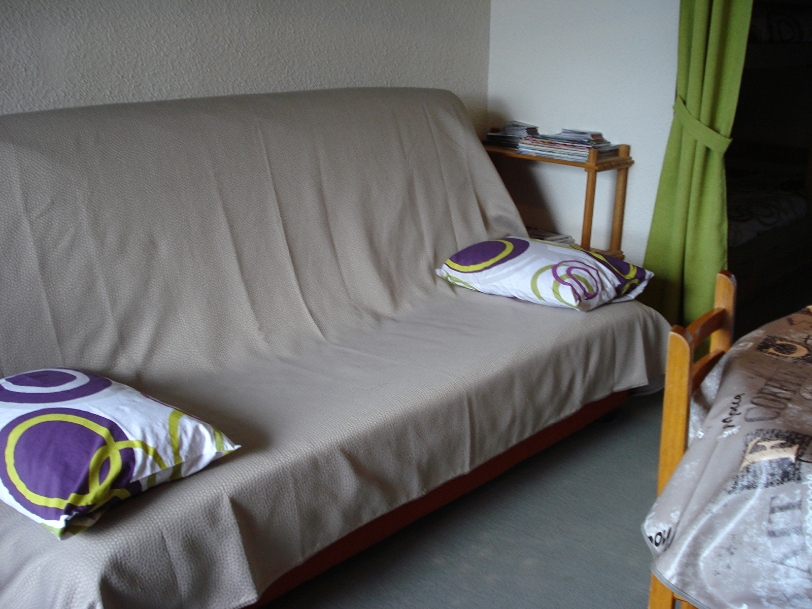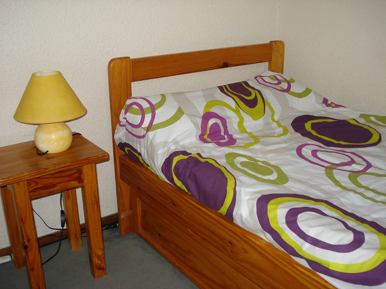 Studio au 1er étage d'une résidence calme, proche du village et des pistes de ski de fond, avec balcon à l'Ouest, entrée (coin cuisine), séjour (clic-clac 2 personnes), coin chambre (petite fenêtre, 2 lits de 1 pers.). WC, salle de bains séparés. Place de parking couvert.