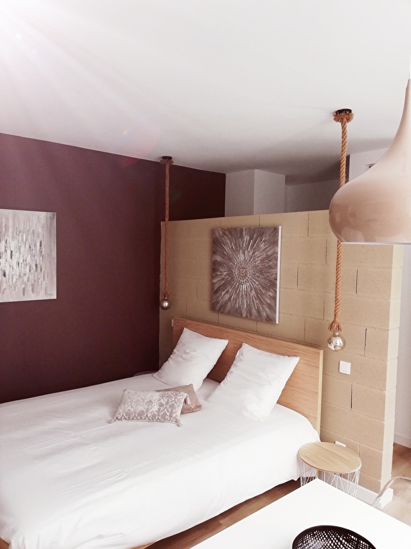 Studio de 23 m² ambiance boudoir & bohème avec salle de bain et douche à l'italienne, sèche-cheveux. Climatisation, TV connectée, accès wifi. Cuisine équipée : plaque vitrocéramique, micro-ondes, bouilloire, machine à café Nespresso, grille-pain. Ménage inclus.