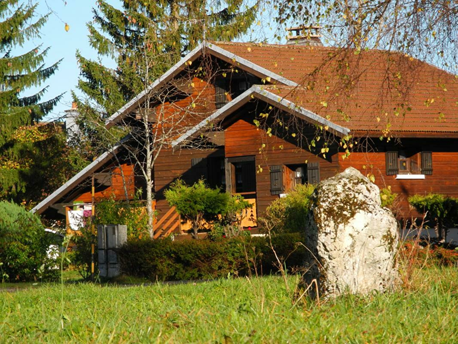 Chalet indépendant situé dans le Haut Jura et à proximité du Doubs. Accès sur une terrasse au sud avec Store Électrique et télécommande, salon de jardin, barbecue. Pièce à vivre avec espace salon, cheminée, coin repas et cuisine intégrée (lave-vaisselle, four micro-onde, appareil à raclette-fondue, grille-pain, batteur, cafetière, bouilloire électrique, TV, lave-linge, équipement bébé (lit, chaise haute et baignoire). 2 chambres avec chacune 1 lit 2 place en 140x190, salle d'eau, 1 wc indépendant. A l'étage : mezzanine avec petit coin salon et portillon sécurité enfant en haut de l'escalier, 3ème chambre avec 1 lit 2 places (140x190) et 1 lit 1 place (90x190). Terrain attenant non clos. Chauffage électrique et bois. Charges non comprises. Activités sportives : Accrobranches, Parcours acrobatique dans les arbres. Composteur à disposition