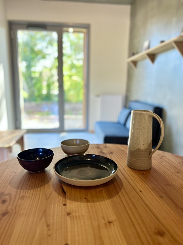 Plongez dans la quiétude de la campagne bourguignonne en séjournant dans un T2 spacieux et moderne au cœur du village potier de Saint-Amand-en-Puisaye. Situés à quelques minutes des grands sites touristiques (Guédelon, château de Saint-Fargeau, maison de Colette), nos T2 de 36 m² vous offrent tout le confort d’un vrai petit appartement : chambre séparée, salon, cuisine équipée, vaisselle conçue sur place… Parfait pour un séjour en couple ou en famille dans une ambiance créative et ressourçante. À partir de 88 €/nuit (3 nuits min.) ou 588 €/semaine. PMR : infos sur demande. Forfait ménage et linge : 58 €.