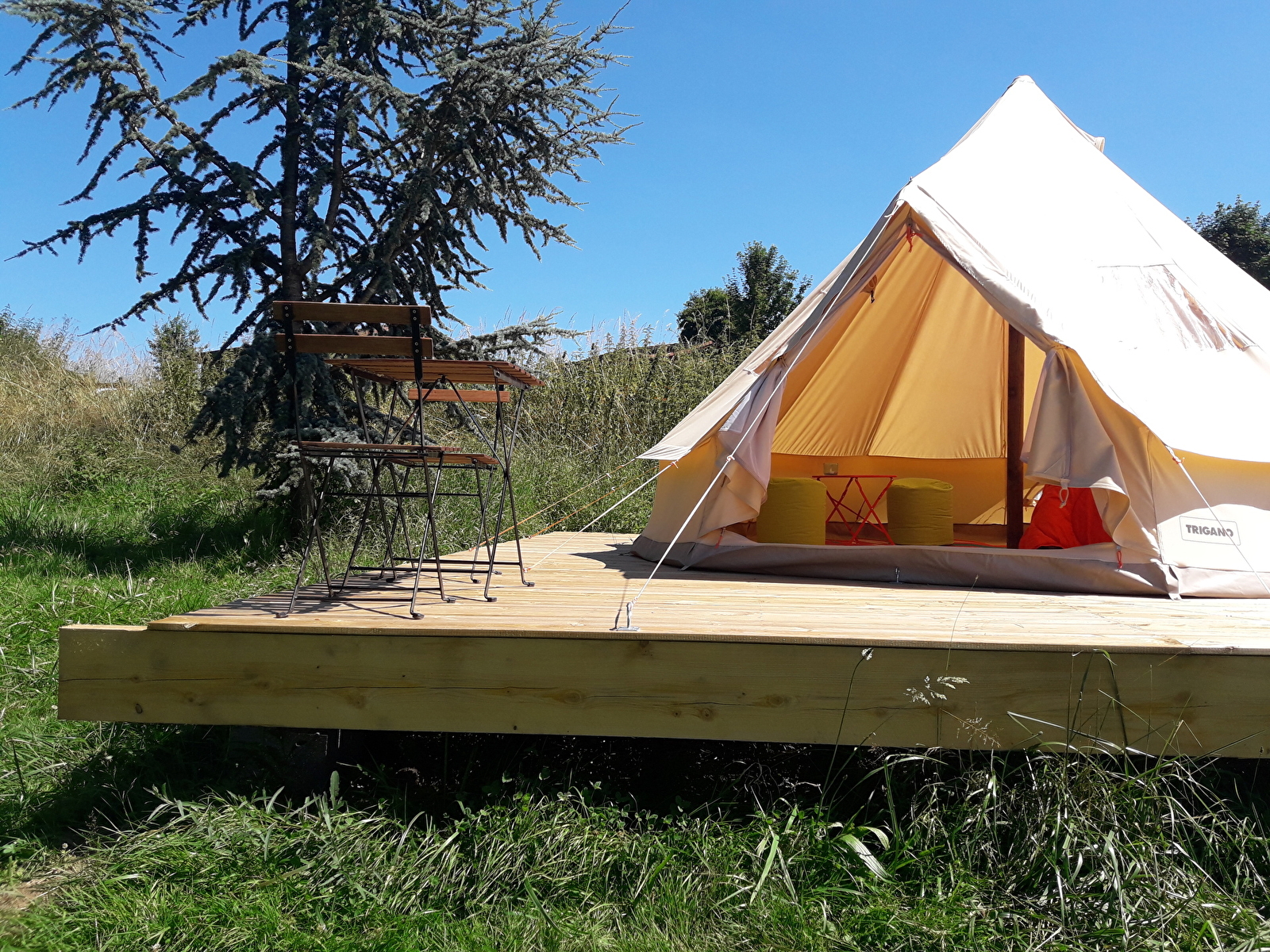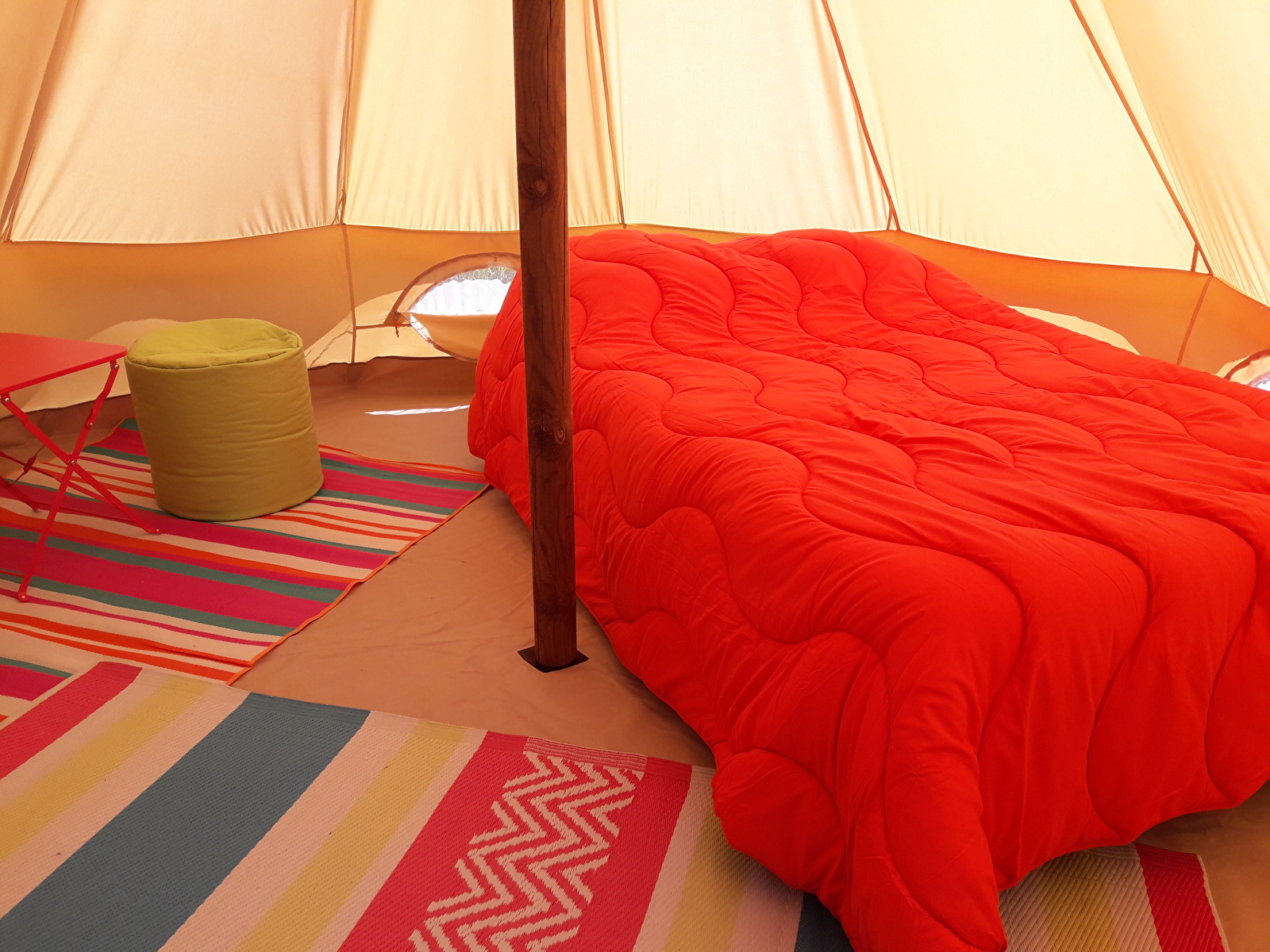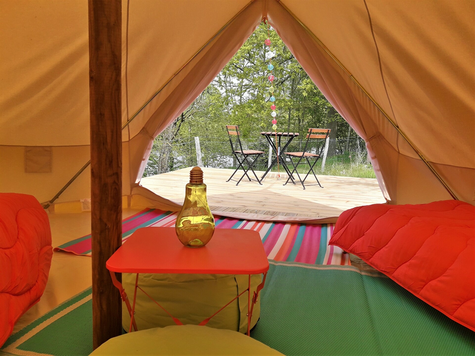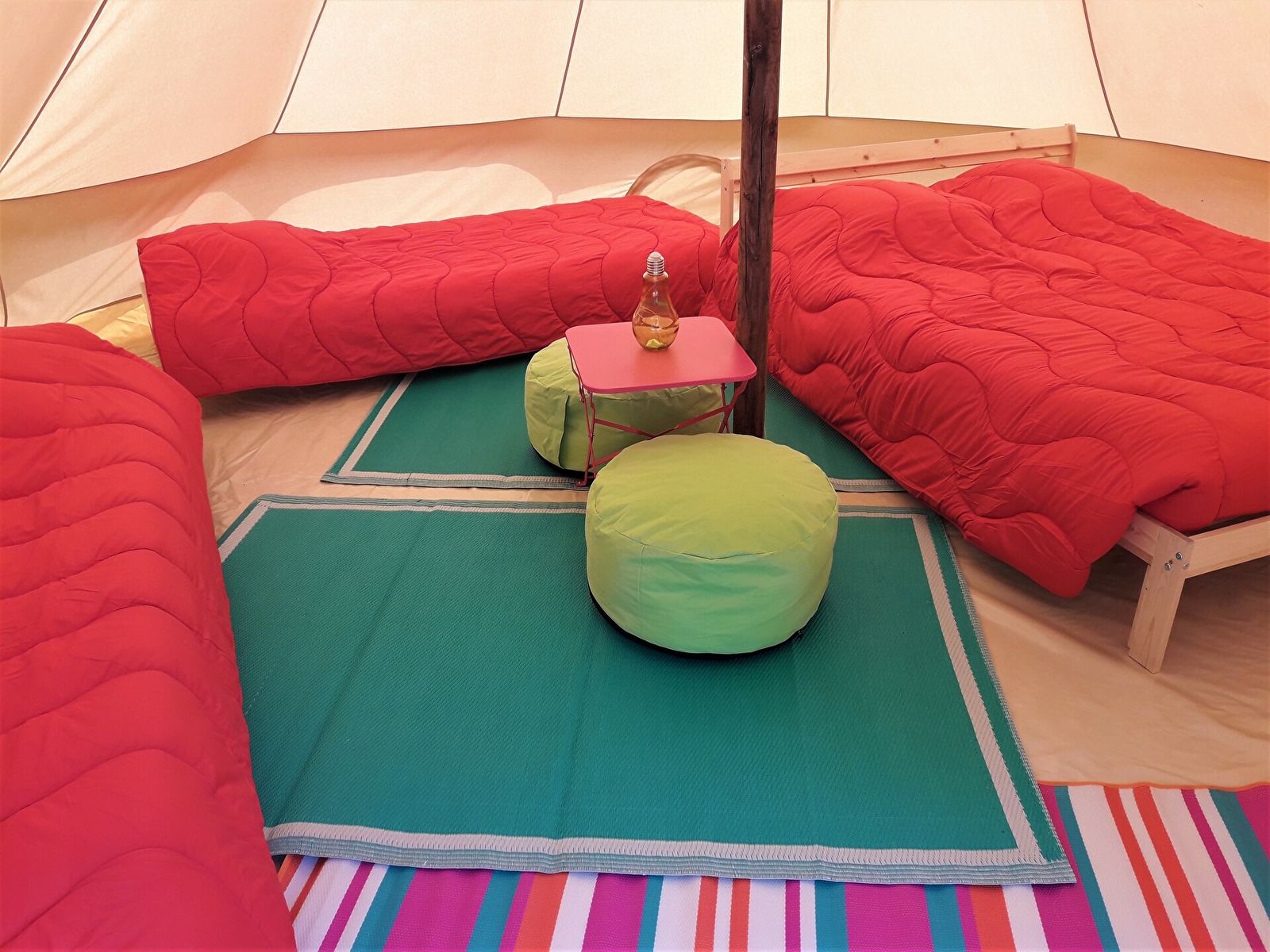Venez passer une nuit insolite dans les tentes "GOBI" du camping du Lac. Confortables avec 4 ou 5 mètres de diamètre, ces tentes (entre le tipi et la yourte) sont équipées de vrais lits pour une nuitée tout confort!