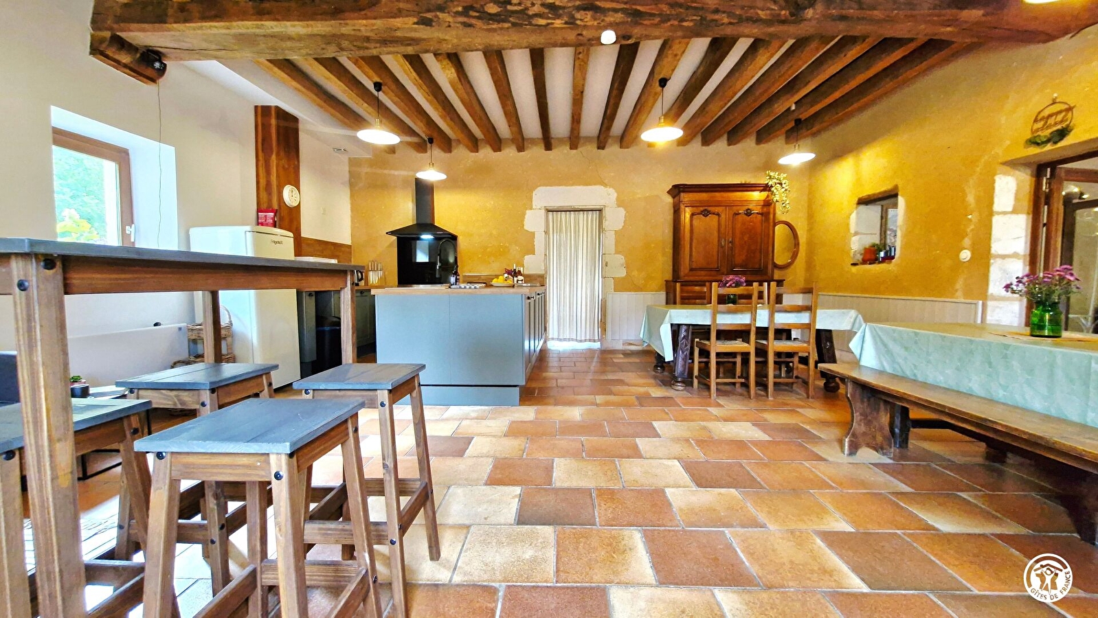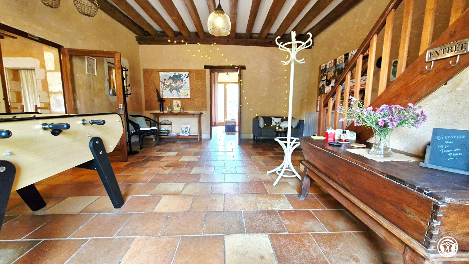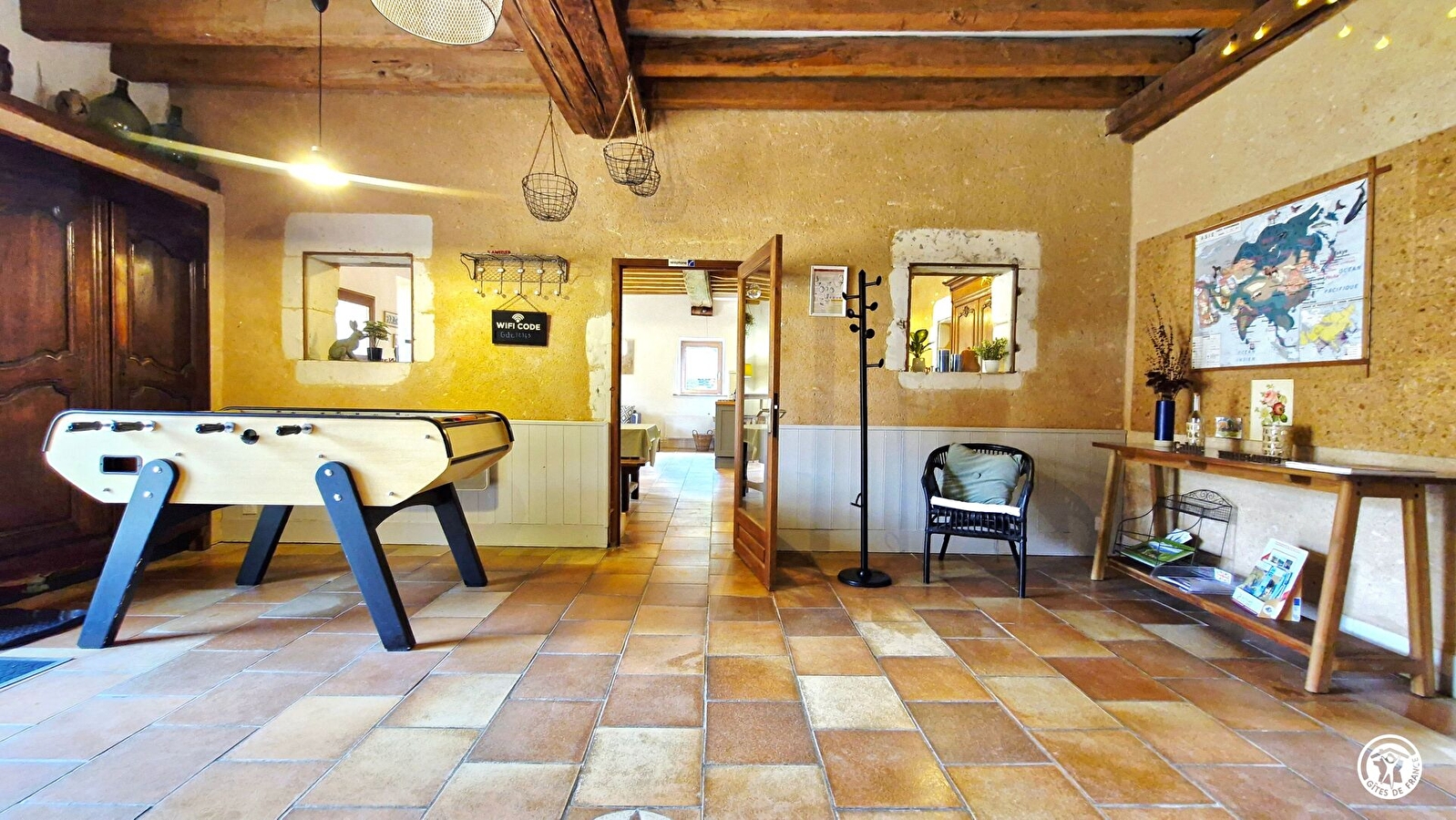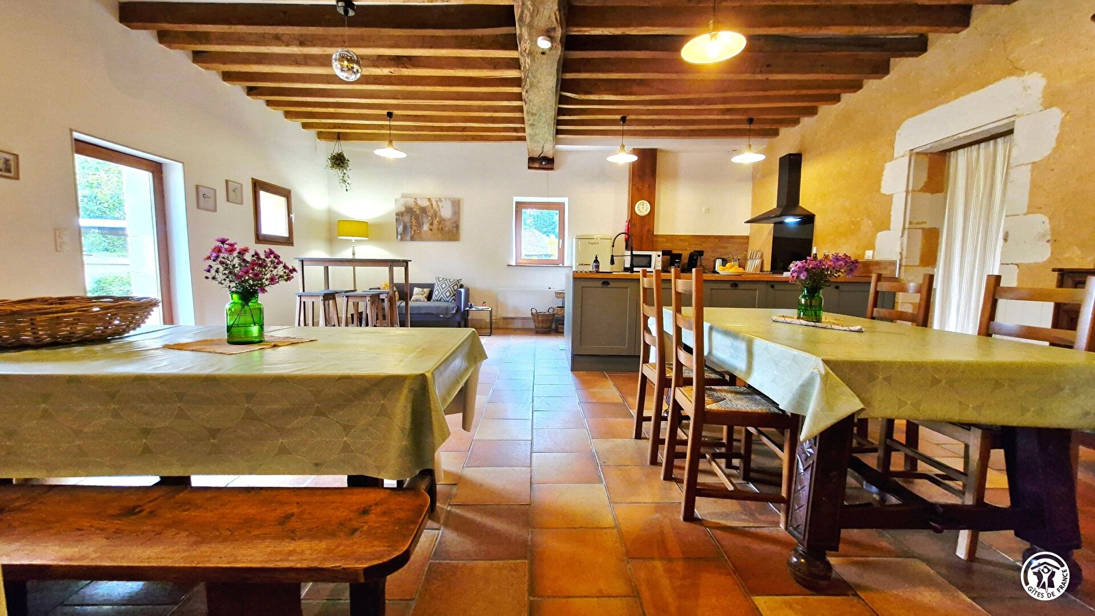 Au rez-de-chaussée, le gîte propose une grande pièce conviviale réunissant cuisine et salle à manger, idéale pour préparer les repas tout en échangeant avec les convives autour d’une grande tablée. Un salon séparé avec canapés et télévision invite à la détente, que ce soit pour lire ou regarder un film. L’entrée est aménagée avec un baby-foot, parfait pour des moments ludiques, et un WC complète cet étage. À l’étage, cinq chambres disposent chacune de leur propre salle d’eau avec douche et WC, tandis que deux autres chambres (en enfilade) partagent la salle de bains/wc. 4 chambres équipées chacune d'un lit 140x190; 2 chambres équipées de 2 lits 90x190 chacune et une chambre avec un lit 160x200. À l’extérieur, vous profiterez d’un jardin ouvert avec terrasse, espace détente et terrain de pétanque, ainsi que d’un barbecue pour vos repas estivaux. Chevaux sur place (clôture électrique). Le gîte dispose également d’un parking privé, d’une connexion Wi-Fi et met à disposition jeux de société et ouvrages locaux.
