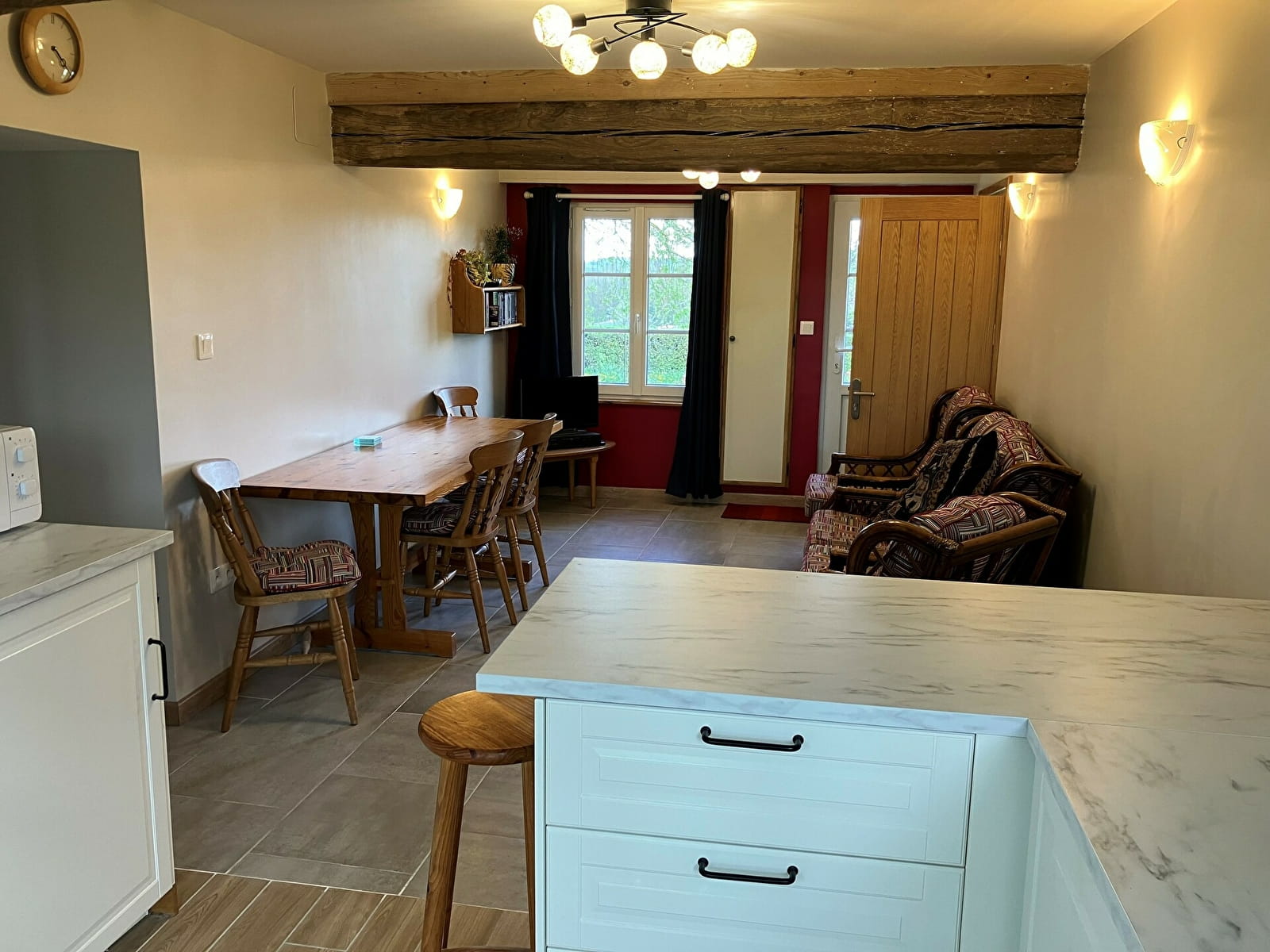 Notre logement, se situe dans le village calme de Chaumot, à 3km de Corbigny. Il se compose d'une cuisine toute équipée, incluant un lave-linge, une salle de bain, deux chambres : une avec un lit double et l'autre avec deux lits simples. Un salon, salle à manger avec TV et Wifi. Nous pouvons fournir du pain frais, des croissants, du beurre, de la confiture et des oeufs ... pour le petit déjeuner. Il y a aussi une machine à café. A l'arrière de la maison, il y a une terrasse avec du mobilier et un barbecue. Il y a un espace gazonné devant la maison avec un grand parking. Nous sommes situés à 300 mètres du canal du Nivernais où il y a deux bars-restaurants ouverts en saison.