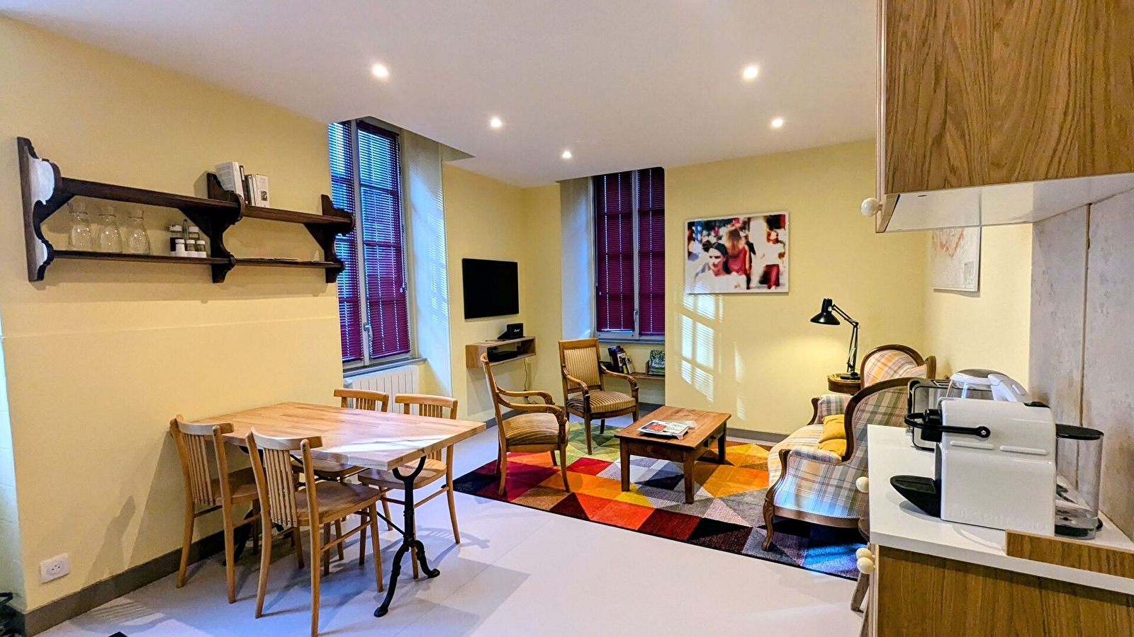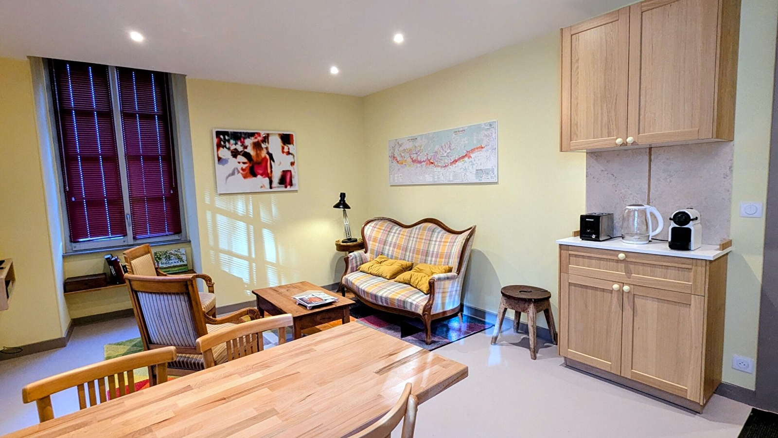 Au centre-ville de Beaune, capitale des Vins de Bourgogne, le City Break "The Right Place", situé au rez-de-chaussée d'un bel immeuble de caractère, vous offre : Cuisine équipée ouverte sur salon avec Smart TV, wifi. 1 chambre avec 2 lits de 90 X 200 cm, jumelables, avec salle d'eau privative avec douche à l'italienne et WC, 1 grande chambre avec 1 lit de 180 X 200 cm, avec salle d'eau privative, avec douche italienne et WC. Bel appartement entièrement rénové, avec prestations de qualité, beaux matériaux et literie hotellière. Lave-linge / sèche-linge combiné. Matériel bébé sur demande : lit parapluie, chaise haute et transat. Parking public payant dans la rue. Possibilité d'expériences oenotouristiques (dégustation, visite de caves, promenades dans les vignes...) organisées par la propriétaire.