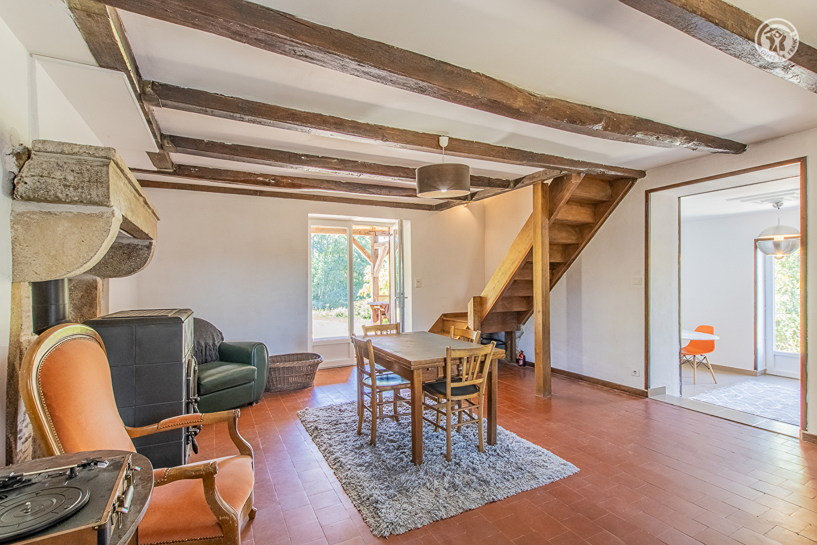 Tous deux réalisateurs-producteurs de documentaires, amoureux de leur sublime "coin de campagne", Géraldine & Jean-Fabrice vous ouvrent les portes d'une ravissante demeure de pays du XIXe intégralement restaurée & revisitée en douce villégiature, blottie au calme à flanc de colline exposée au sein d'un paisible petit hameau rural. Magnifique environnement niché en pleine campagne charolaise vallonnée au creux d'un bucolique vallon de bocage & prairies, à l'orée d'une vaste forêt sauvage (à découvrir à pied ou VTT), tout proche d'un étang de pêche de 40 ha (Étang du Grand Baronnet), sublime écrin préservé de nature & verdure en grande partie protégé en "Zone Natura 2000" pour la protection des rares tortues "Cistude d'Europe" & la qualité globale de son riche écosystème (ensemble de 4 étangs cernés de vastes ceintures végétales préservées). Cadre absolument magique & enchanteur, 100% reposant & relaxant. Spacieux gîte de bon confort. Grande pièce de vie. Chaleureux cachet campagnard aux multiples influences, conjuguant traditions, ambiance néo-rustique, esprit contemporain & touches design "seventies" dans un charmant "mix & match". Vaste terrasse abritée de 30m². Agréable terrain naturel de 5000² abritant une mare poissonneuse (grenouilles, carpes, gardons…) & un verger fruitier (pommiers, pruniers, noyer, néfliers, poiriers, cognassier, groseilliers… / cueillette possible). Belle vue dégagée sur la campagne environnante. Possibilité d'observer la faune sauvage sur place.