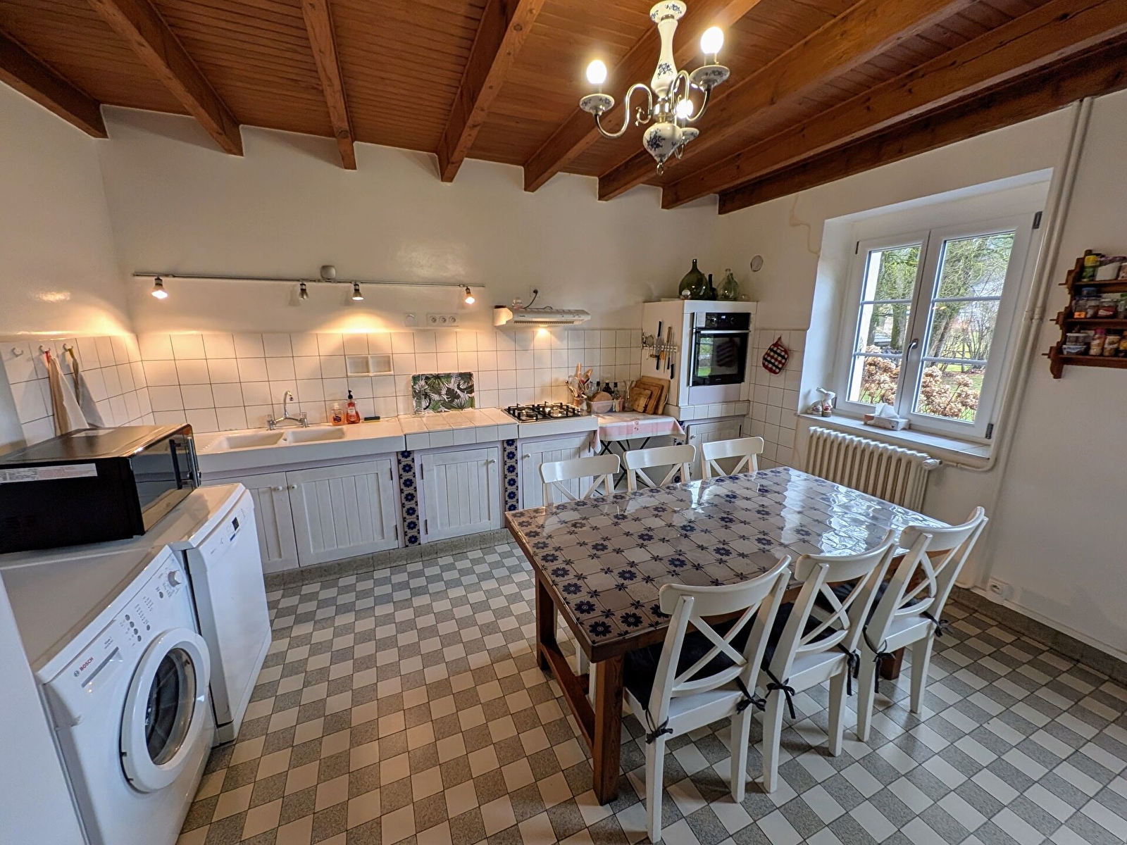 Les espaces de vie ont été pensés pour le confort et la convivialité. Le séjour permet de se retrouver agréablement en toute saison. La cuisine entièrement équipée comprend réfrigérateur, four, micro-ondes, lave-vaisselle, cafetières filtre et expresso, bouilloire, grille-pain, vaisselle et ustensiles complets. Le gîte est chauffé par un chauffage central et des plaids sont à disposition pour les soirées plus fraîches.