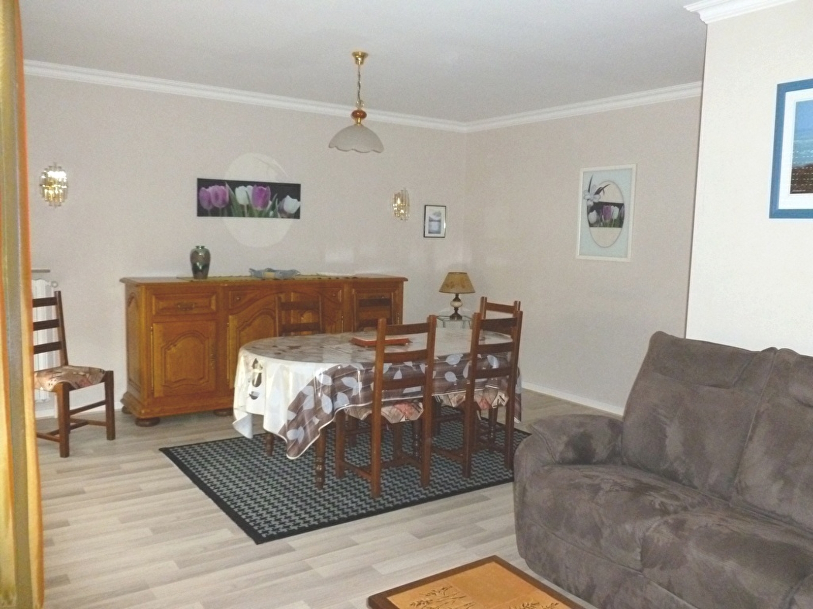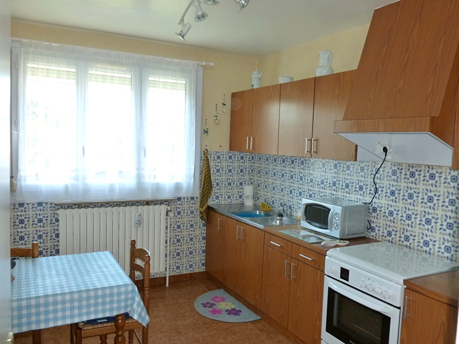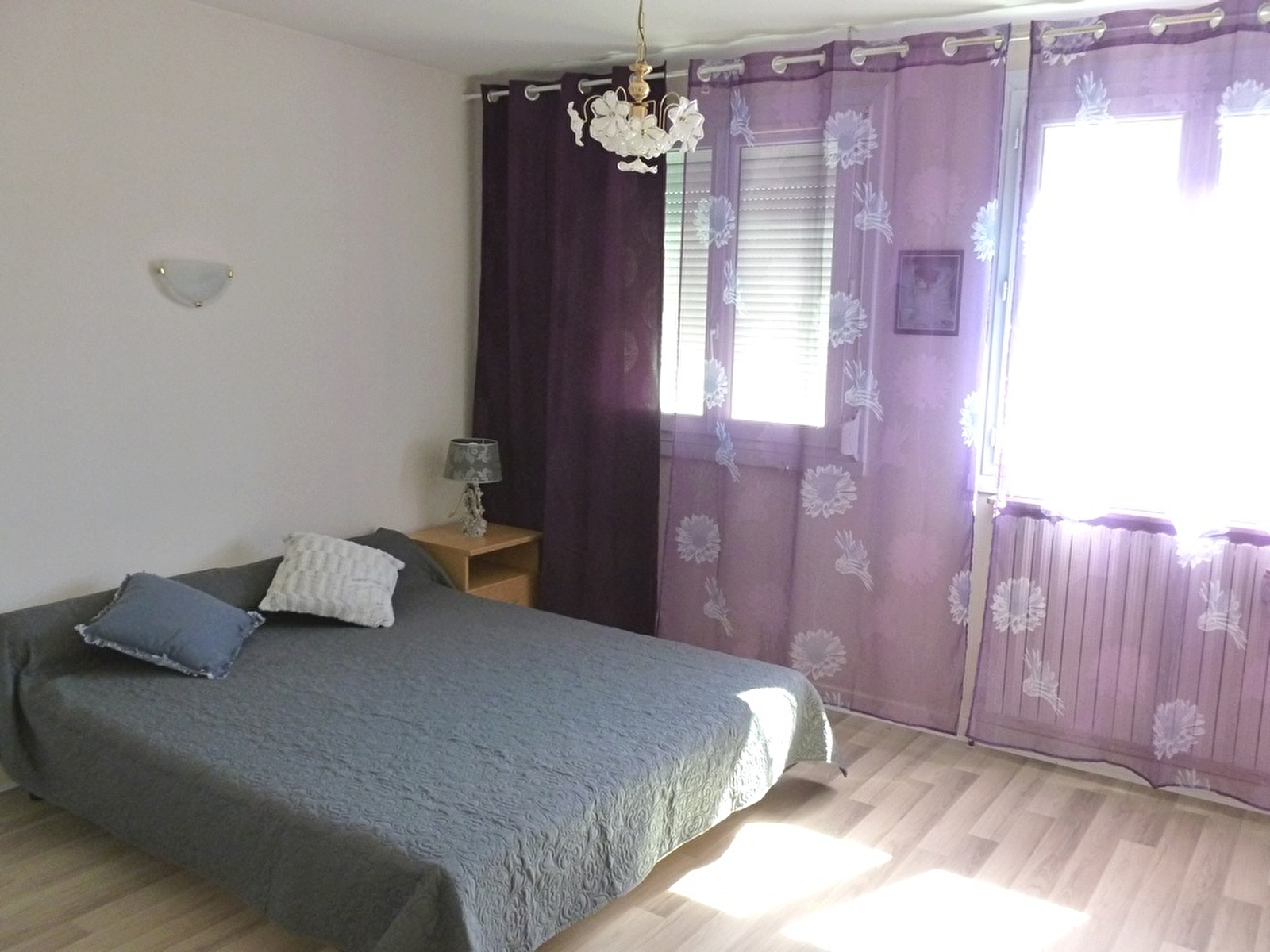 Maison individuelle meublée, 2 chambres, salle de bain, cuisine, séjour, chauffage central, WC indépendant, draps fournis. Cour, espace vert clos.