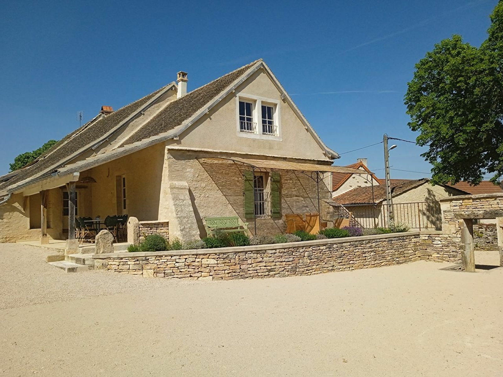 Vignerons retraités en agriculture biologique, œnophiles passionnés, Sylvie & Pascal vous ouvrent les portes d'une élégante demeure vigneronne de caractère du XVIIIe chargée d'histoire, soigneusement restaurée avec goût dans les règles de l'art , lovée au calme en belvédère sur un plateau sud-est exposé dominant la douce campagne vallonnée du haut mâconnais. Calme total au creux d'un bucolique écrin préservé de nature & verdure en lisière immédiate de prairie, à l'orée d'une vaste forêt (faune sauvage observable sur site). Au cœur d'un paisible mini hameau rural typique, le plus ancien répertorié d'Ozenay (pittoresque village préservé, riche d'une église romane classée du XIIe & d'un majestueux château médiéval du XVe). Magnifique environnement, 100% relaxant & reposant. Belle vue dégagée sur la campagne alentours. Superbes panorama & paysages. Gîte de grand confort. Très spacieux. Vaste pièce de vie. Chaleureux cachet campagnard d'esprit contemporain, mixant traditions & modernité, sublimé par une restauration patrimoniale soignée (conservation des linteaux en pierres & bois, poutres, charpentes, mur en pierre… tous d'origine). Énormément de charme & caractère. Très cosy. Ambiance douillette et dépaysante d'une demeure pétrie d'histoire & d'authenticité. Large terrasse abritée sans vis-à-vis ouverte sur la prairie (vaste terrain naturel privatif). Grande cour modulable en littéral terrain de pétanque.