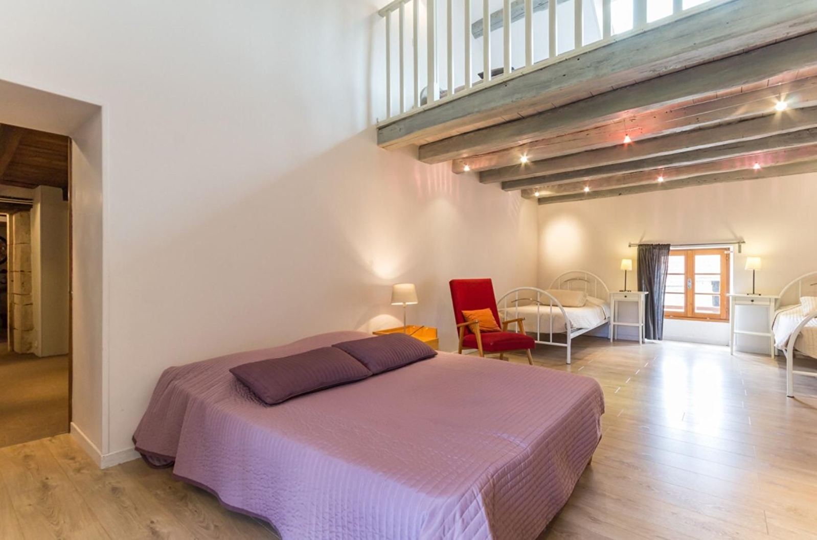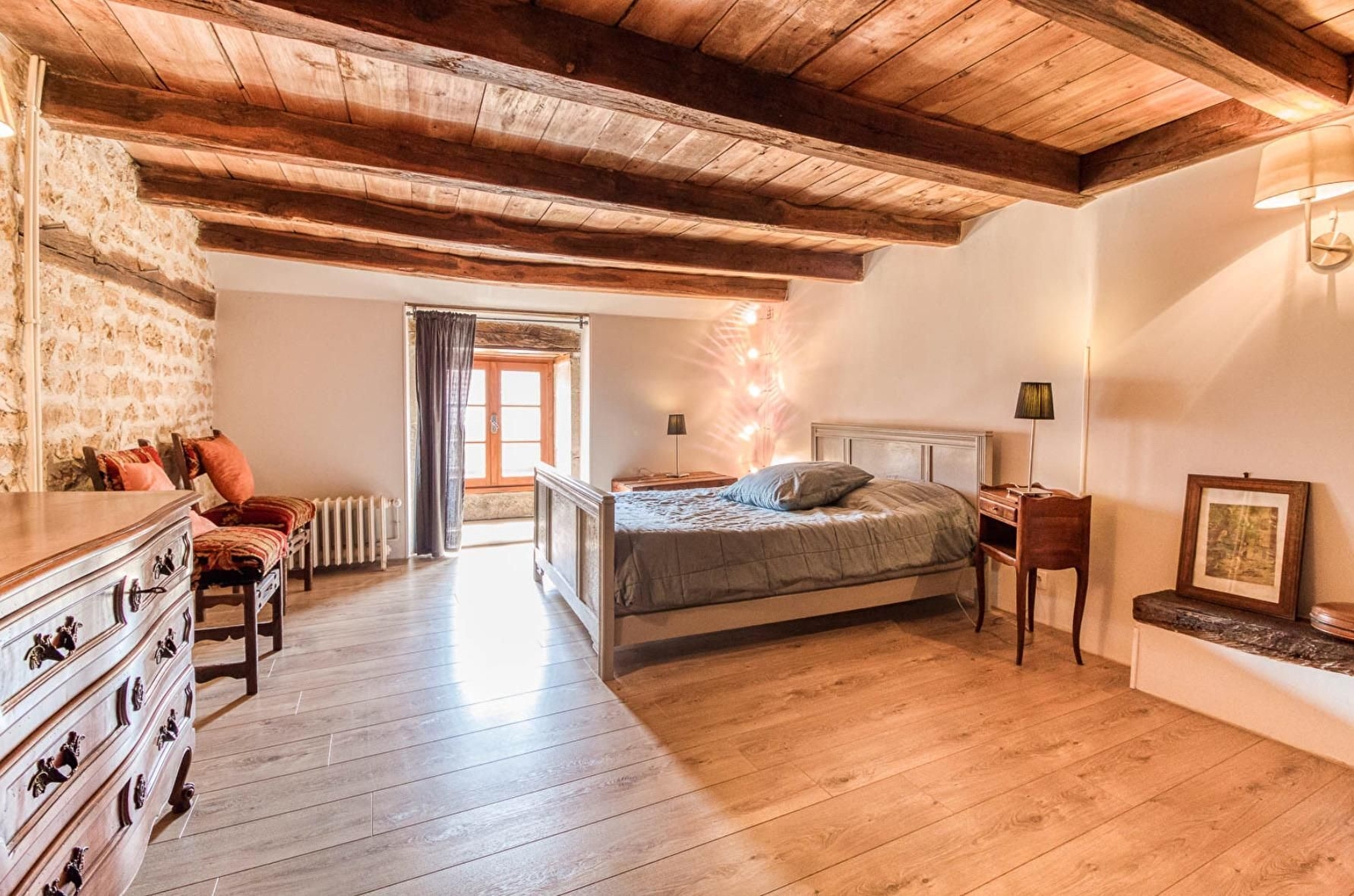 Grande maison indépendante ancienne et rénovée située dans un hameau isolé, idéal pour se ressourcer en pleine campagne. Rez-de-chaussée : salle à manger avec poêle à bois, cuisine, un salon avec un canapé convertible (couchage 140), salle de bains avec baignoire et douche, WC indépendant. A l'étage : 3 chambres dont une avec mezzanine (2 lits 160, 2 lits 140, 2 lits 90). Équipement bébé : 2 lits bébé (un à barreaux et un parapluie), une chaise haute et une baignoire. Salle d'eau. WC. Terrain non clos en totalité, au calme de 450 m². Abri. Parking privé fermé. 1 animal autorisé maximum.