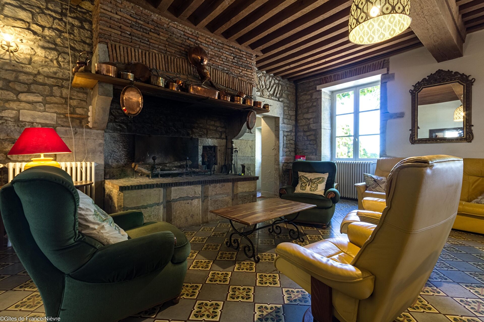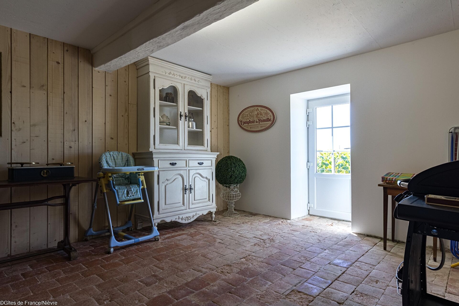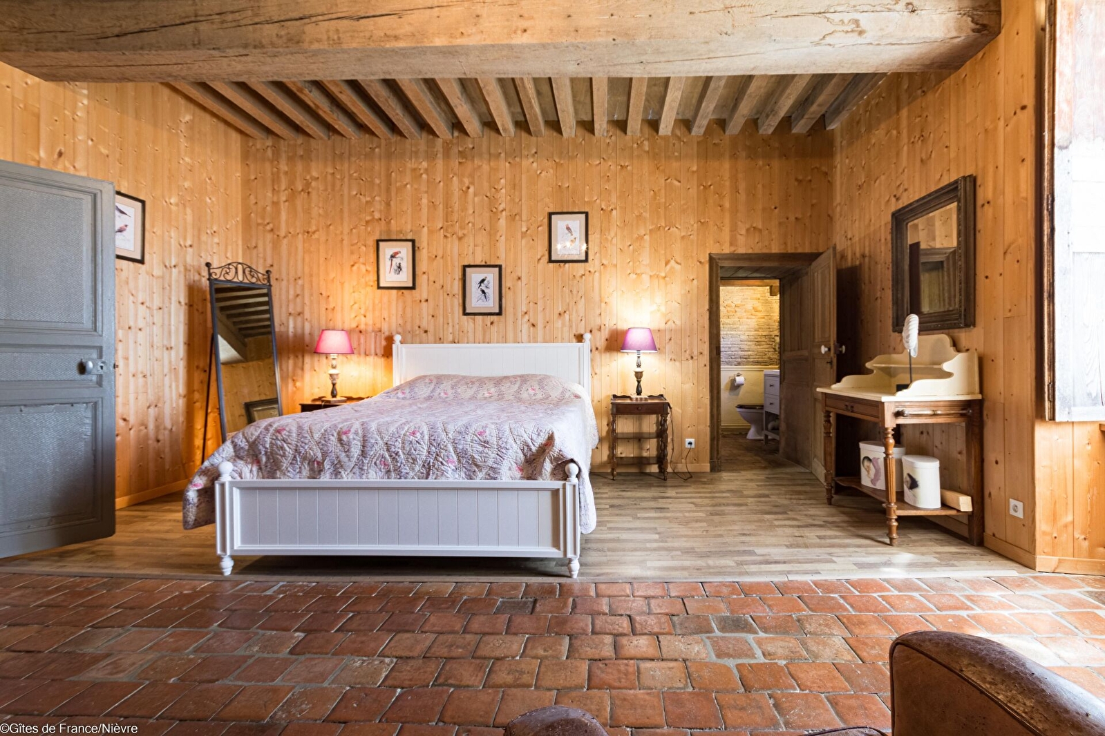 Grande maison de caractère et de plein-pied, (490 m²) esprit campagne vintage dans cour de ferme céréalière, isolée à travers champs, sans vis-à-vis : vaste salle de séjour avec cheminée, 2 espaces cuisine, 5 grandes chambres dont 2 chambres avec chacune 1 lit 140x190 et 1 salle de bain attenante (baignoire, double vasque et wc); 1 chambre avec 1 lit 160x200 et sa salle d'eau (douche et wc); 1 chambre triple avec 2 lits 100x190 + 1 lit 90x190 et wc; 1 chambre avec 2 lits 140x190 et 1 lit 90x190 et salle d'eau (douche). Equipement pour 3 bébés. WC privatif dans pièce attenante au gîte à l'extérieur. Grand terrain semi-clos de 8000 m² avec jolie vue paysagère et thym à disposition. A 4 km du Canal du Nivernais et de sa véloroute voie verte. A proximité des Etangs de Vaux et de Baye pour les amateurs d'activités nautiques. A ne pas manquer : la visite de Châtillon-en-Bazois dont le château fort et les jardins situés au bord du canal vous séduiront. Aux portes du Parc Naturel du Morvan (nombreuses activités sportives sur les lacs, culturelles). A proximité de Nevers, ville d'Art et d'Histoire, et de la station thermale de Saint-Honoré-les-Bains. Ce grand gîte plait beaucoup pour son caractère authentique, son esprit campagne vintage, alliant charme et tradition. Il est parfait pour les rassemblements de famille ou d'amis ( anniversaires, enterrements de vie de garçon ou de jeune fille, cousinade ..... ) et également pour voir de magnifiques couchers de soleil et le ciel étoilé sans pollution visuelle.