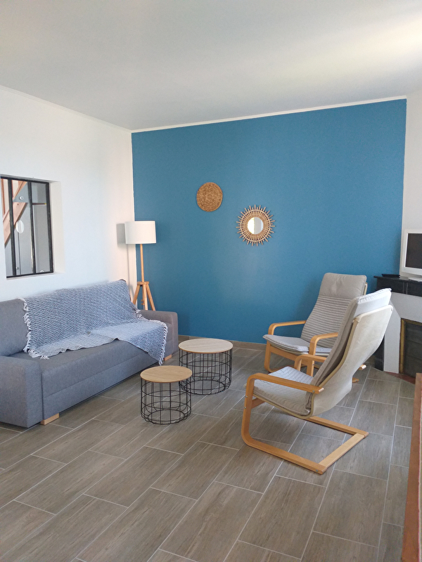 Cette maison dispose d'une grande cuisine entièrement équipée donnant accès à un salon séjour très lumineux.