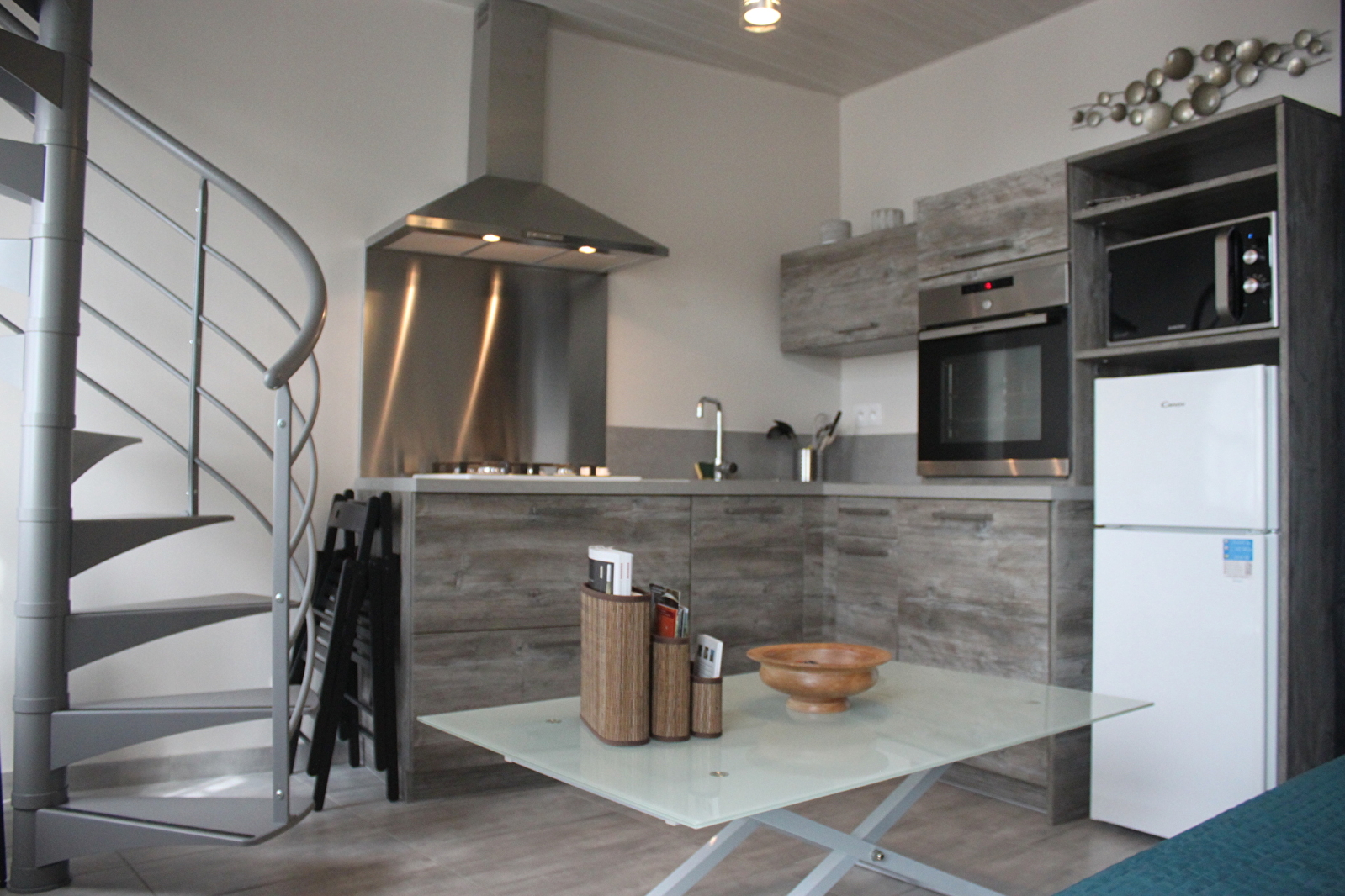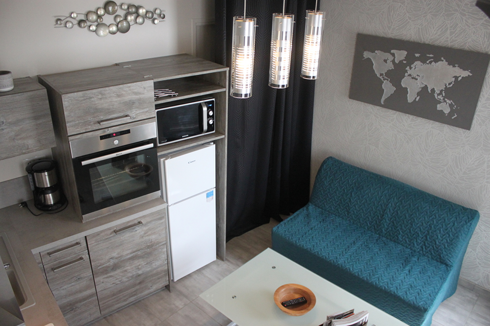L'appartement Vergîte, rénové en 2018, se compose d'une pièce à vivre avec cuisine intégrée, lave vaisselle, coin salon, canapé BZ convertible.